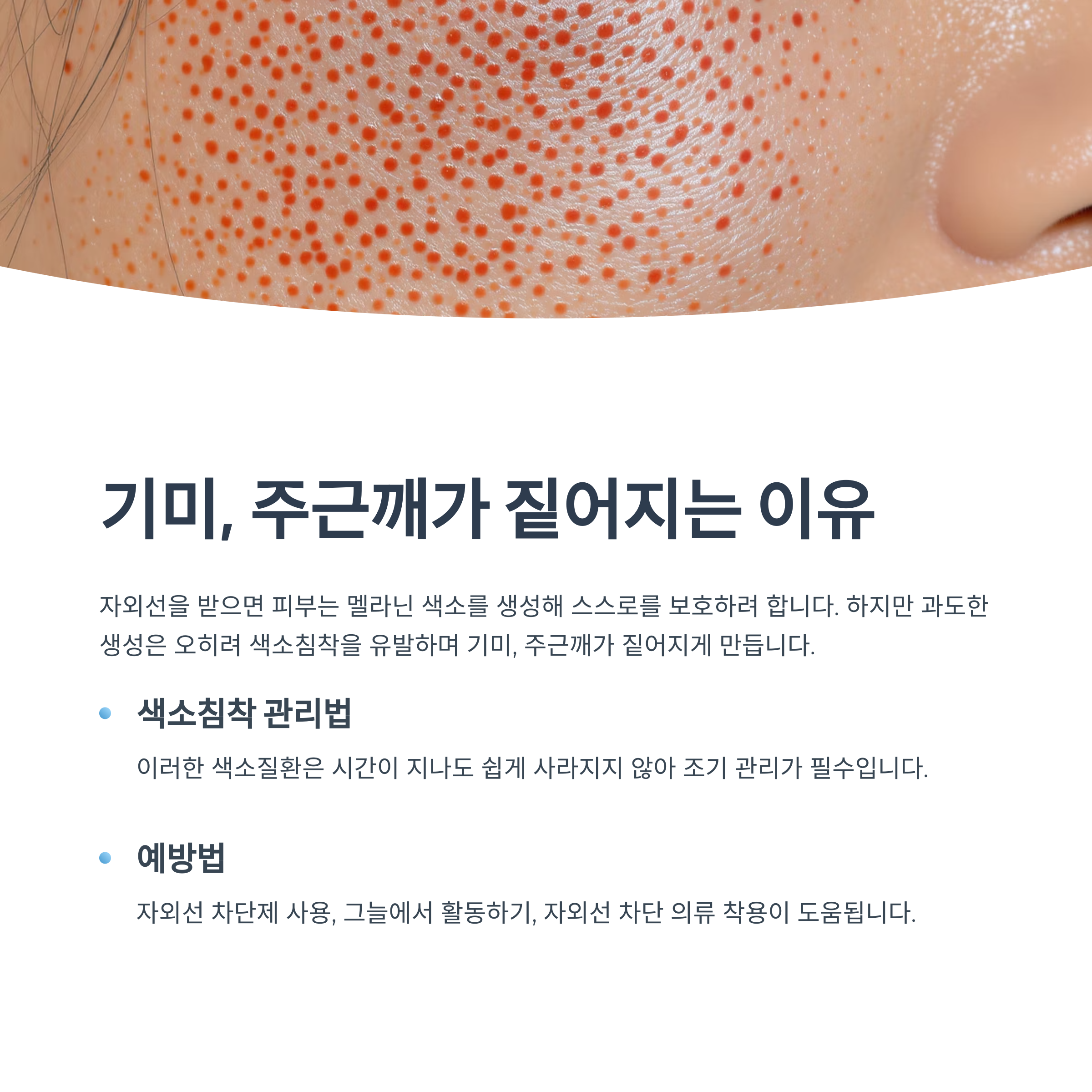 기미, 주근깨가 짙어지는 이유는 멜라닌 과다 생성 때문이에요