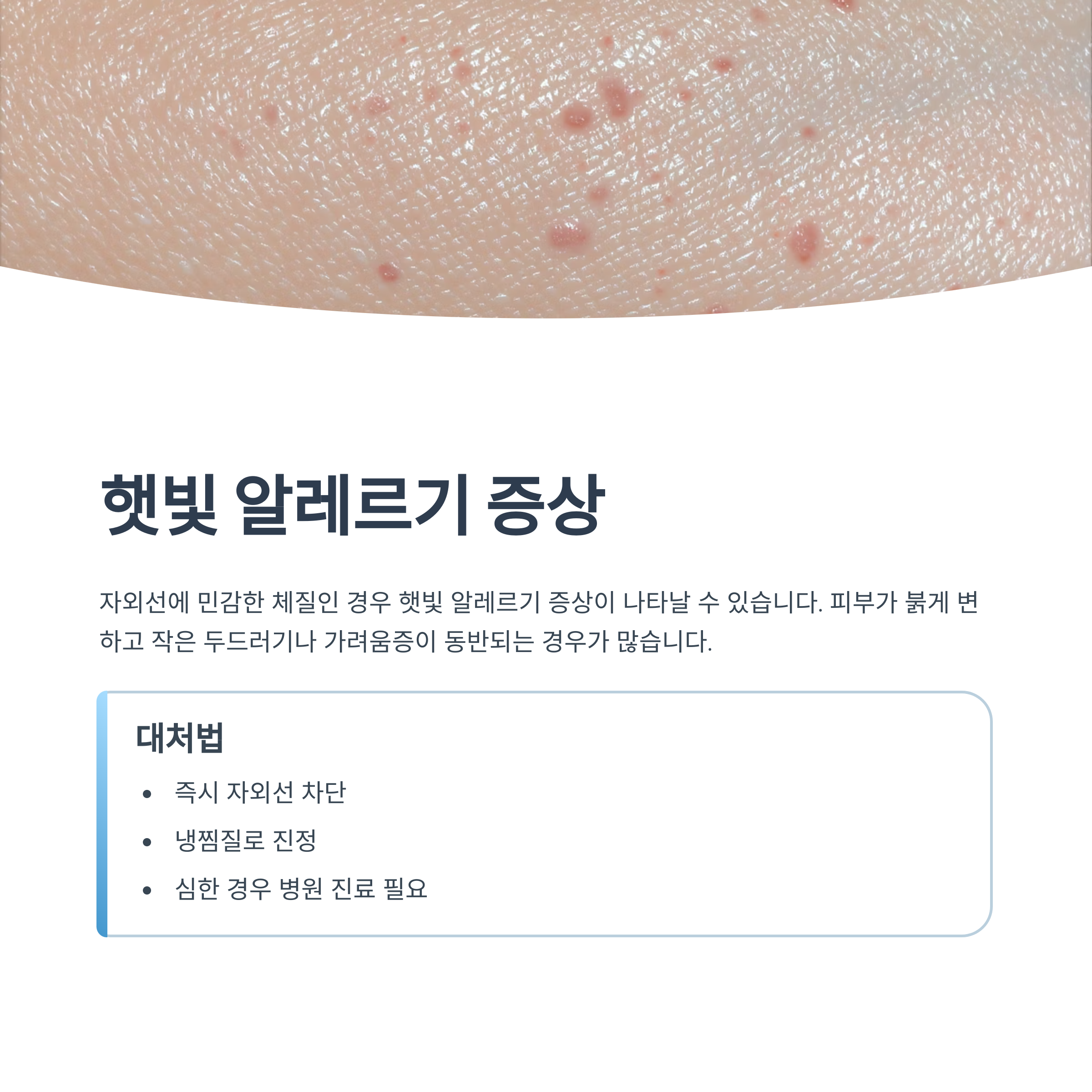 햇빛 알레르기처럼 피부가 가렵고 발진이 생겨요