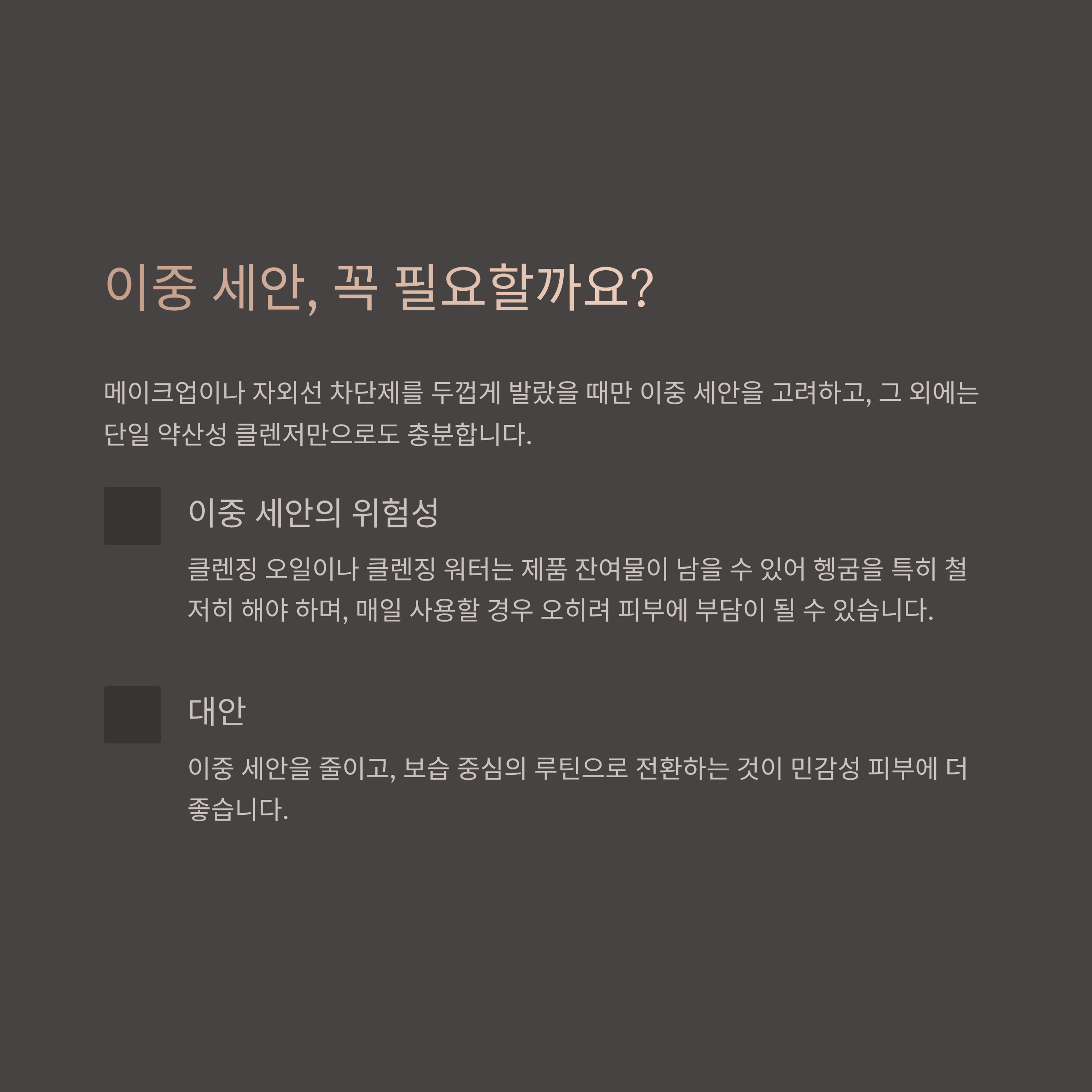 이중 세안은 최소화하고 필요할 때만 선택하세요