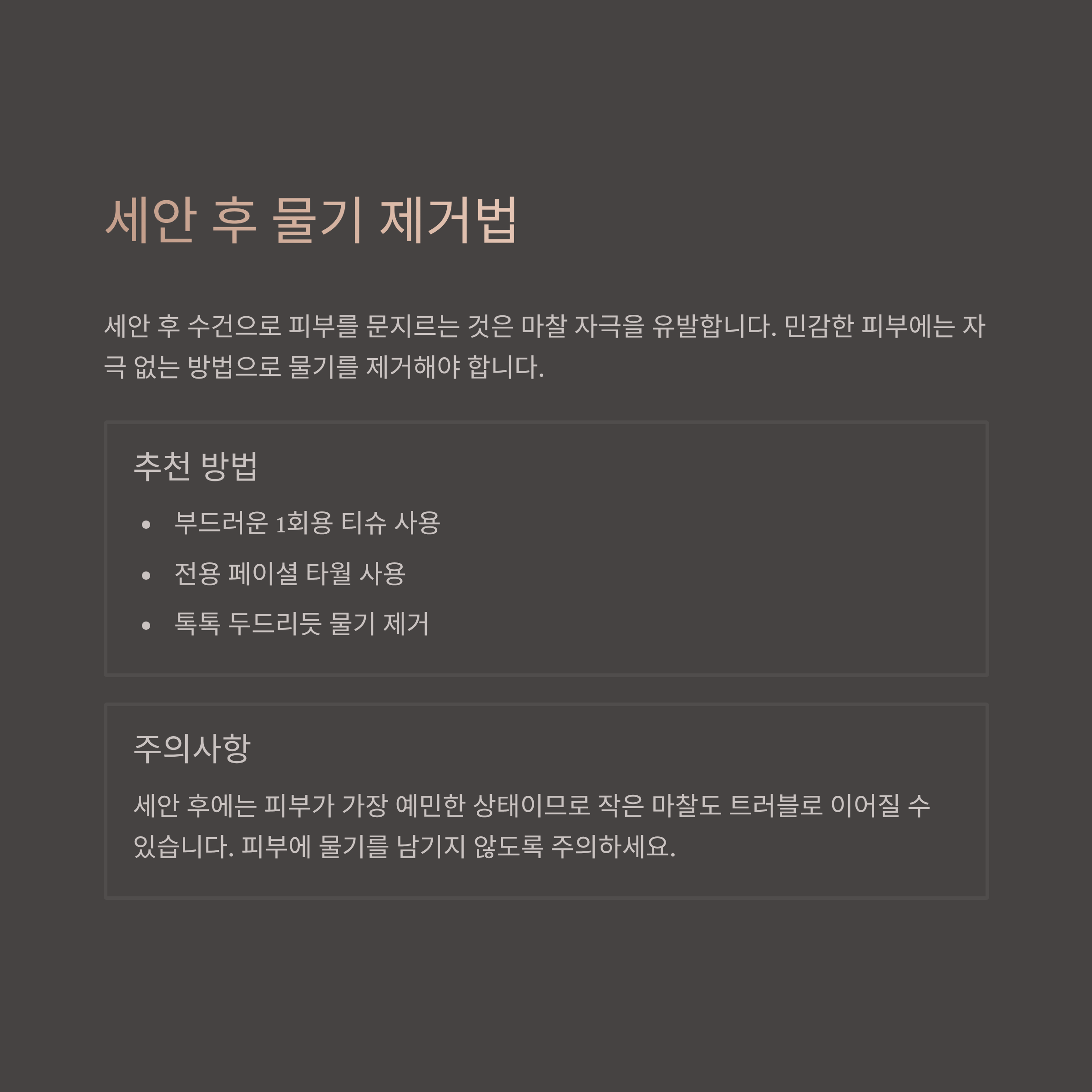 피부에 물기를 남기지 않도록 닦아내야 합니다.