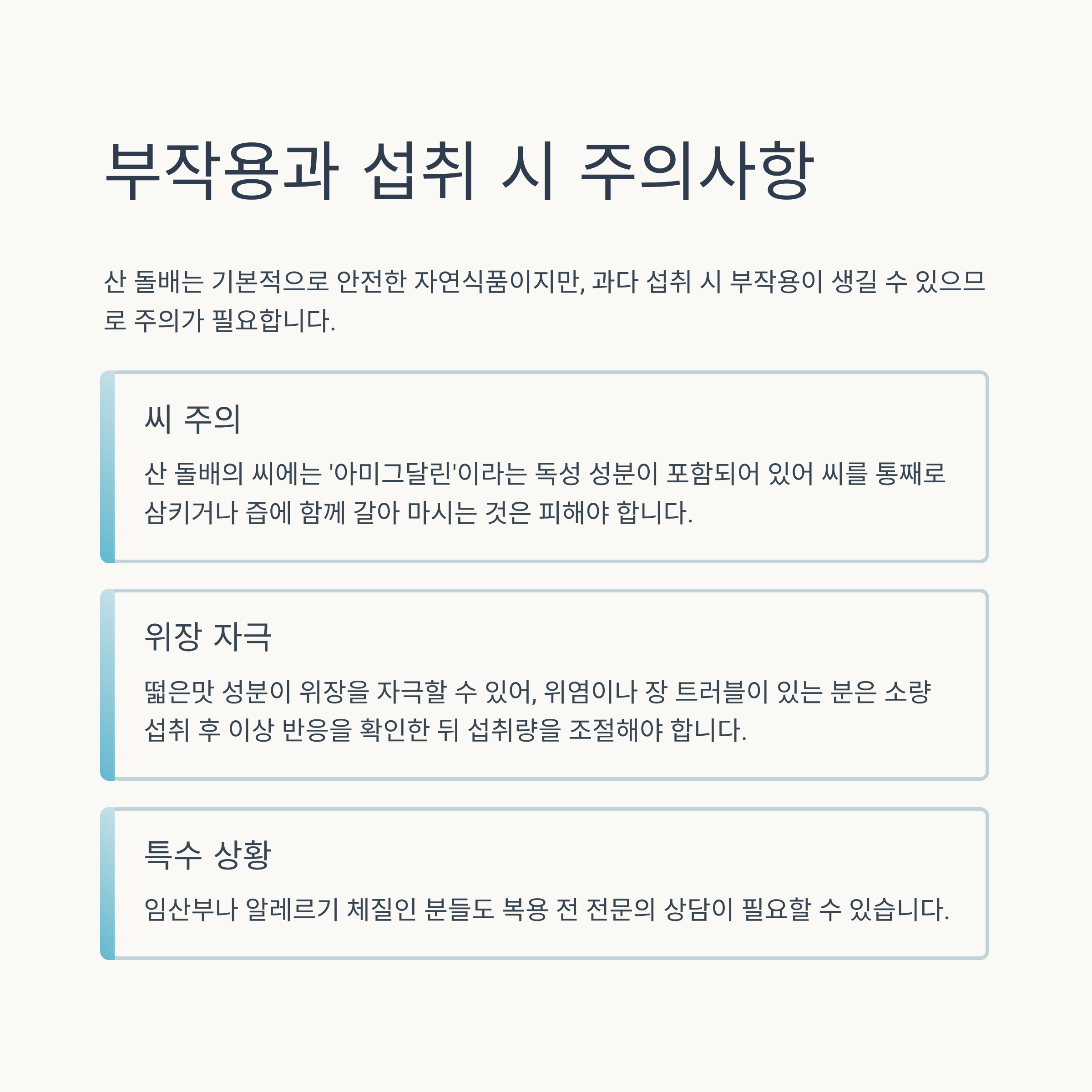 특히 산 돌배의 씨에는 '아미그달린'이라는 독성 성분이 포함되어 있어