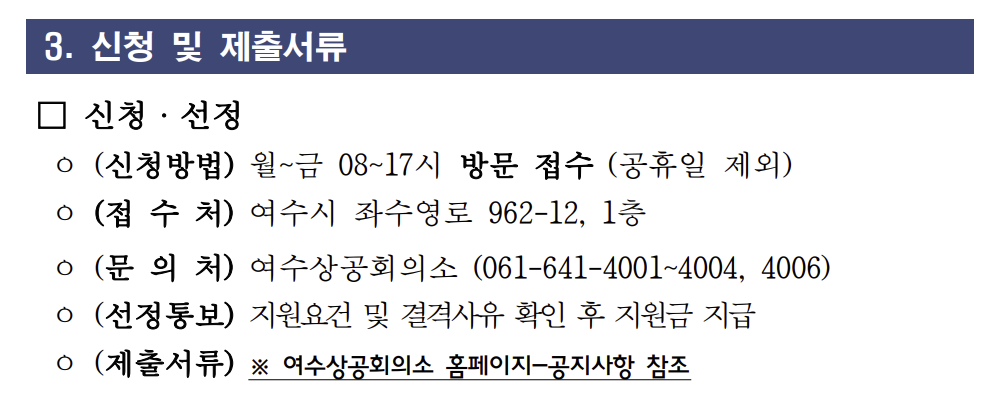 - 접수: 여수상공회의소 방문