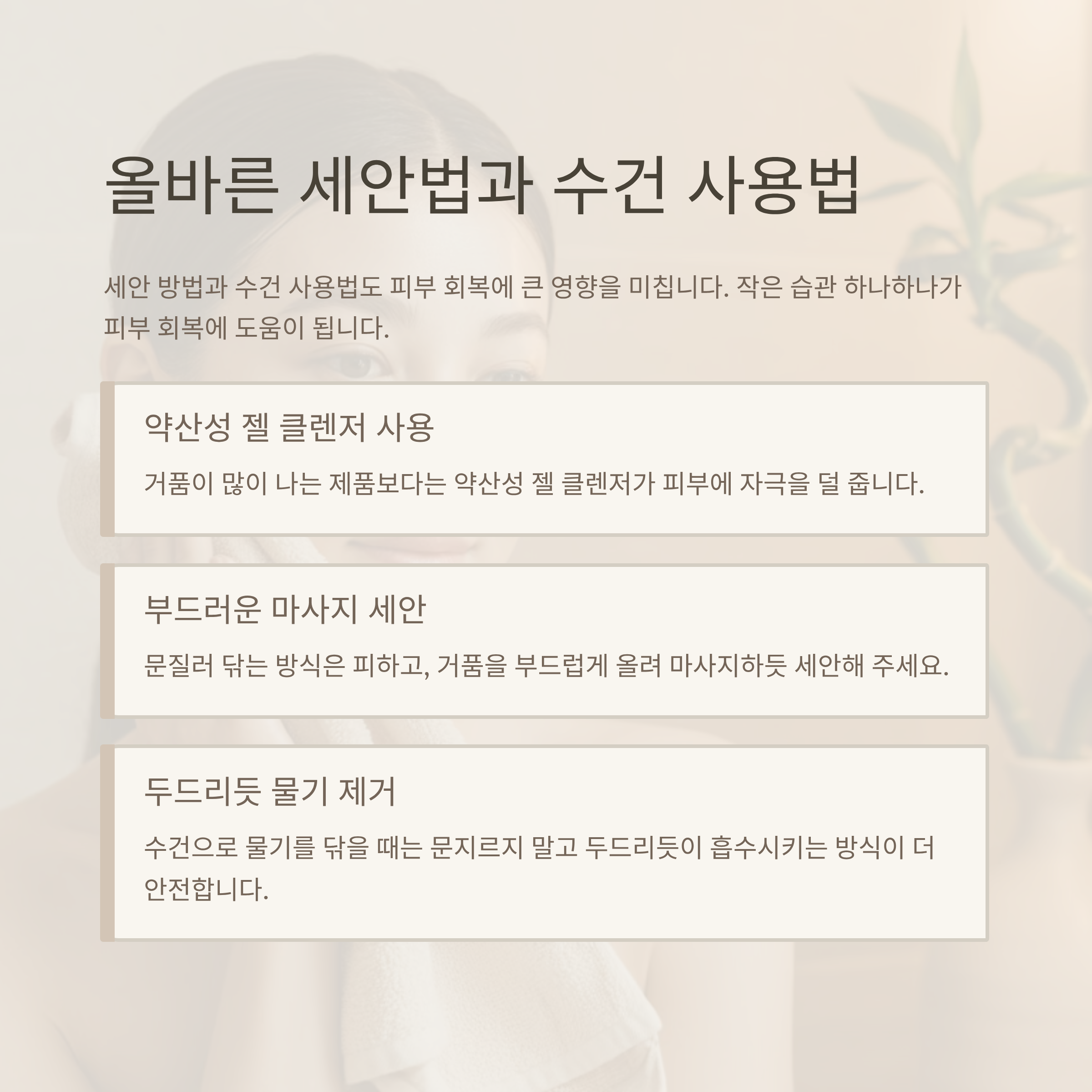 세안법과 수건 사용에도 주의가 필요합니다