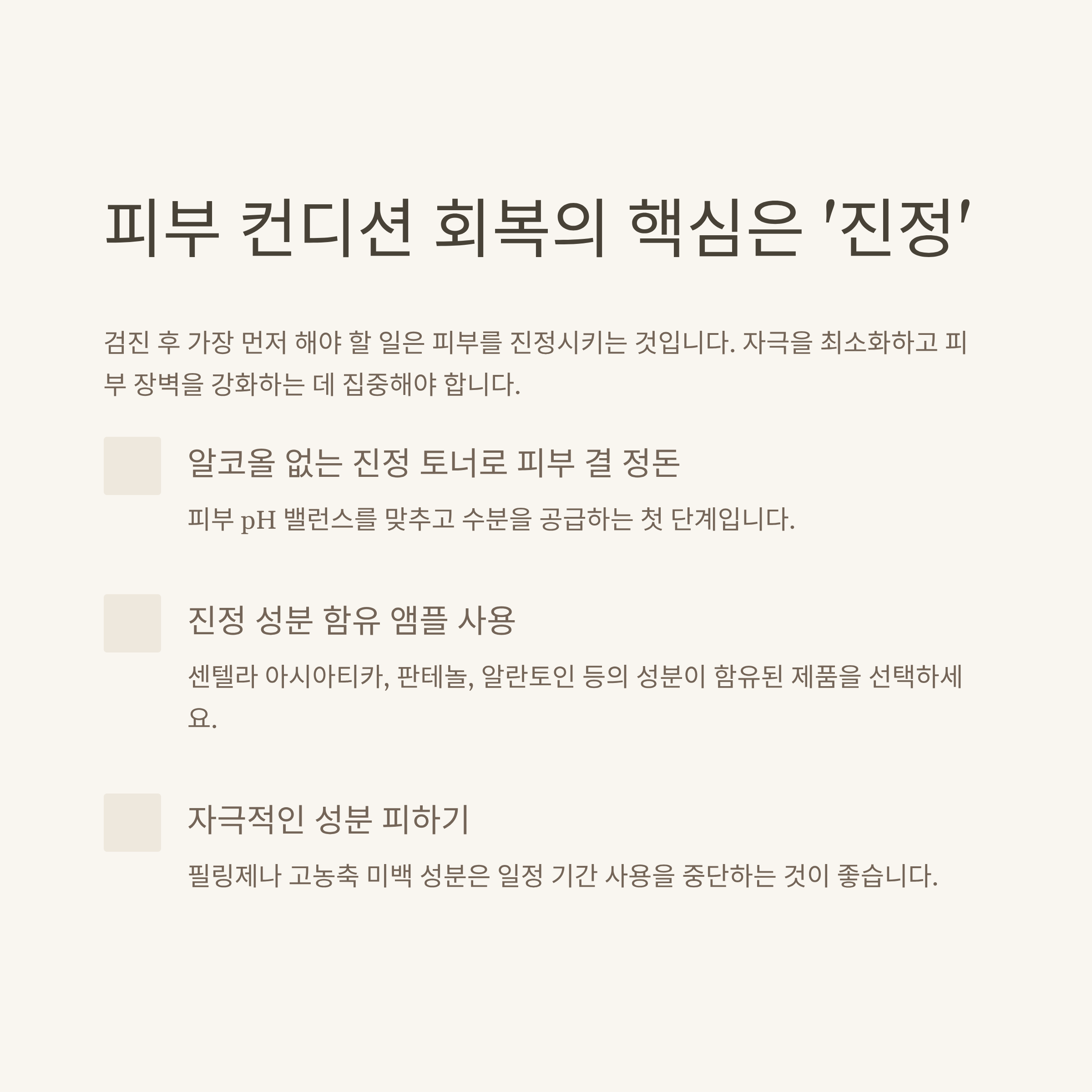 이 작은 습관 하나하나가 피부 회복에 큰 영향을 줍니다.