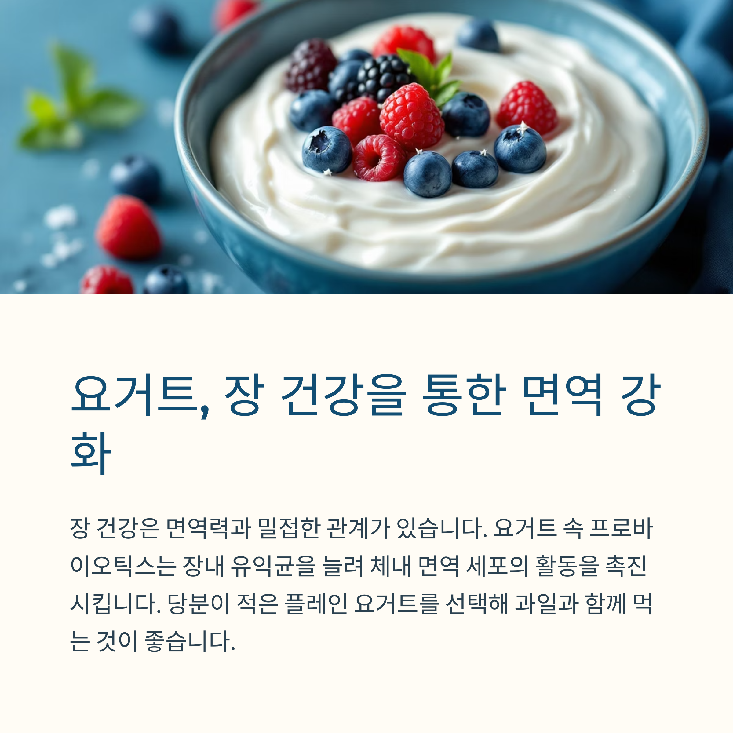 요거트 | 장내 유익균 증가, 면역세포 활성화 |