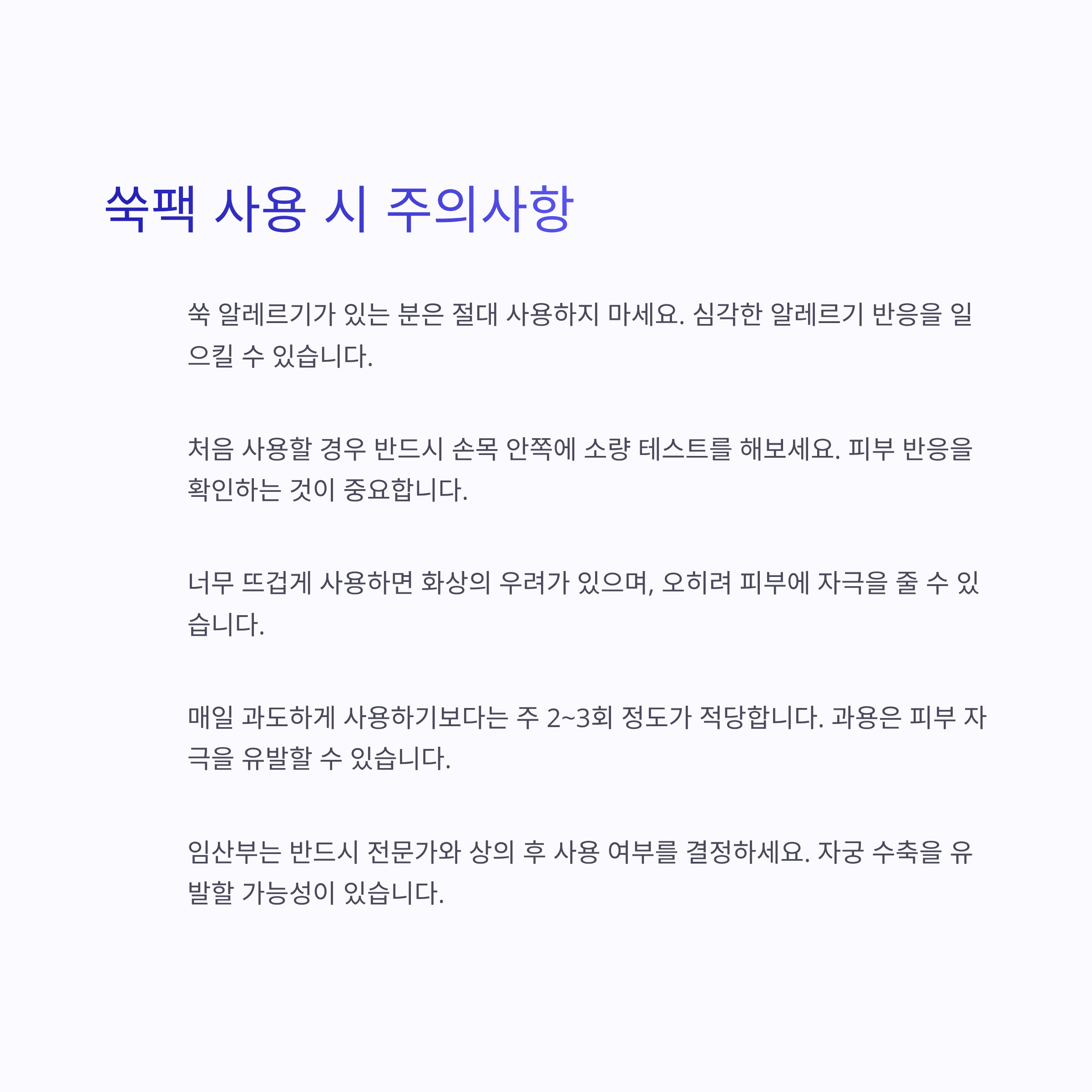 쑥팩 사용 시 주의사항은 꼭 기억하세요
