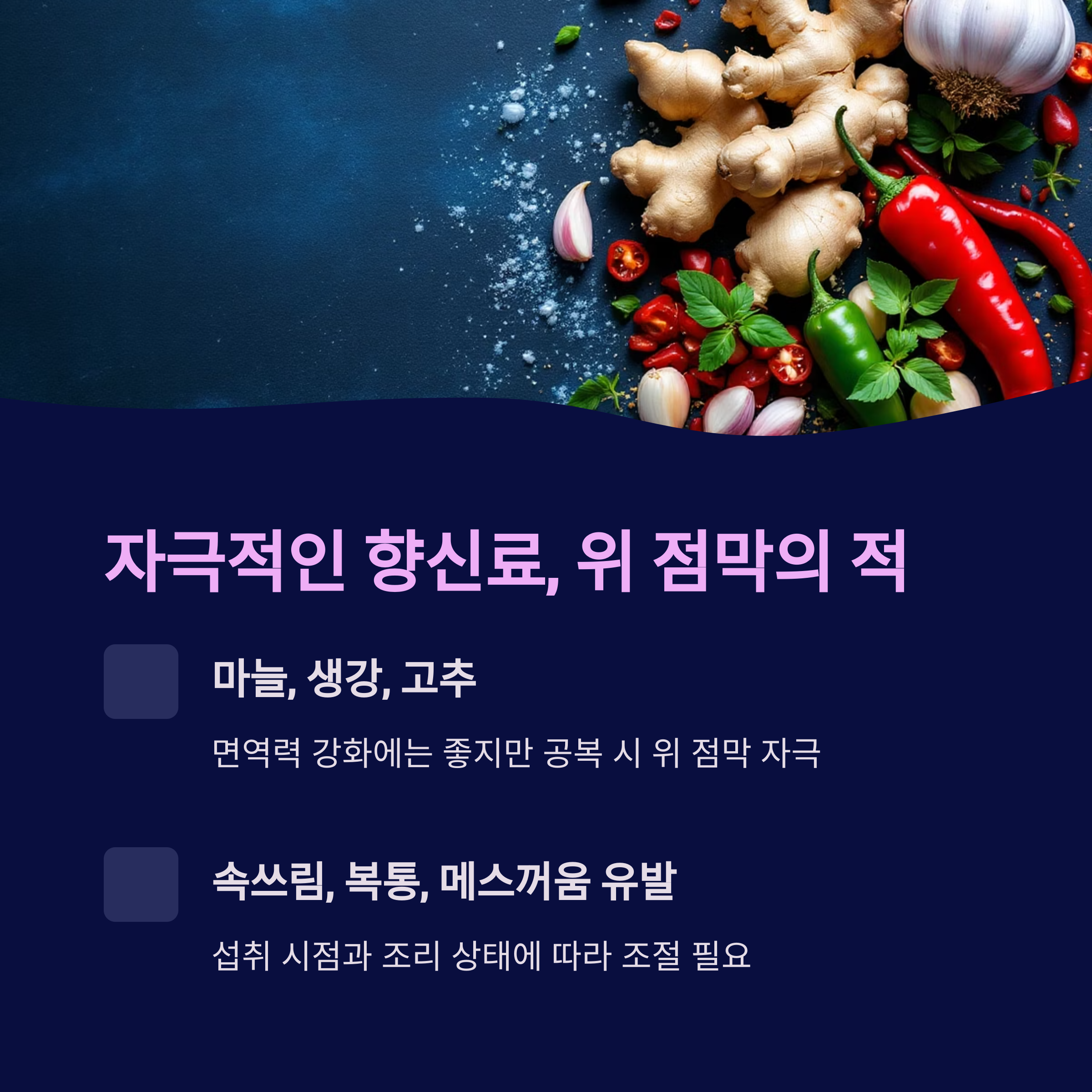 공복에 섭취 시 위벽을 자극해 속쓰림과 위산 역류를
