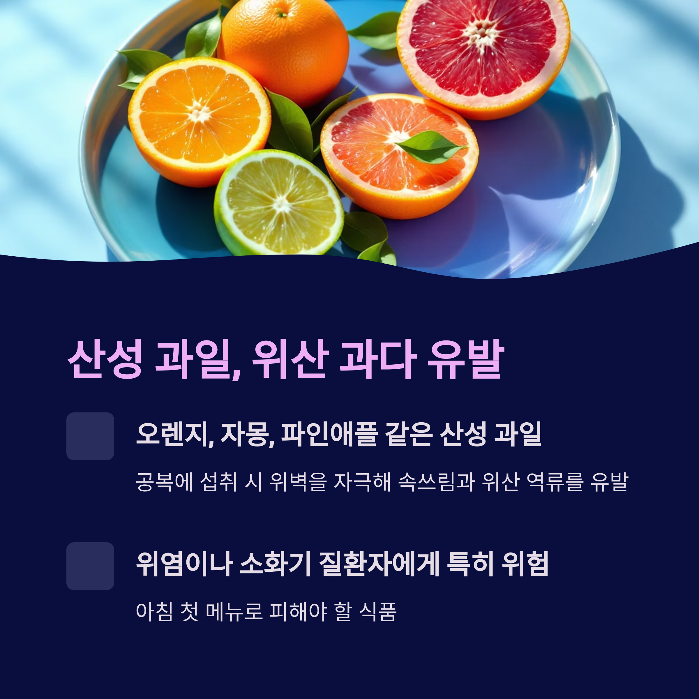 | 오렌지, 자몽 | 산성 자극, 위벽 손상 |