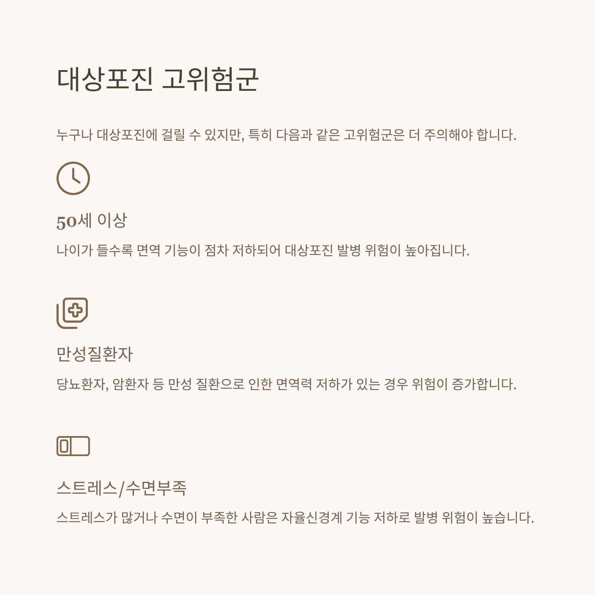 특히 면역력이 떨어지는 중장년층 이상에게 잘 발생하며,