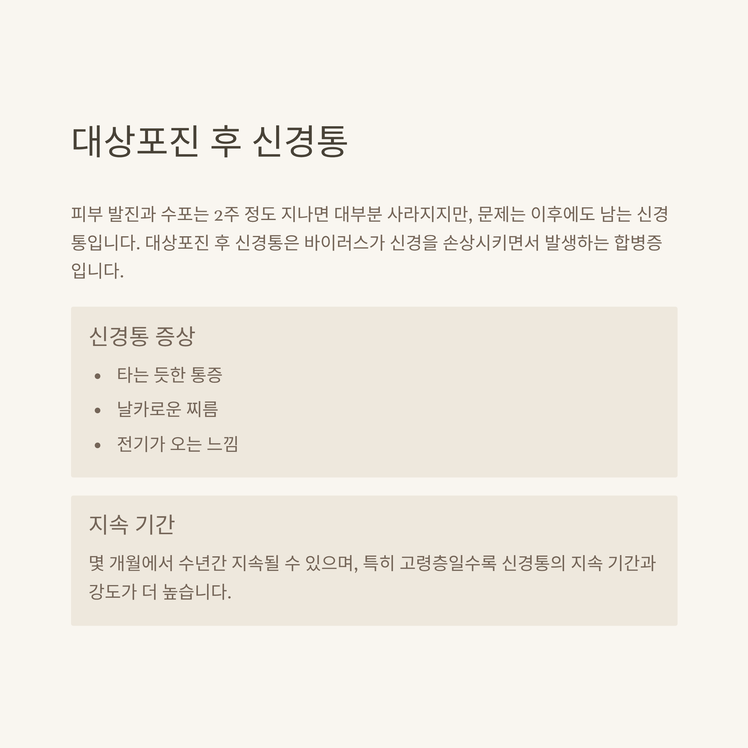 발진이 사라진 후에도 지속되는 '대상포진 후 신경통'