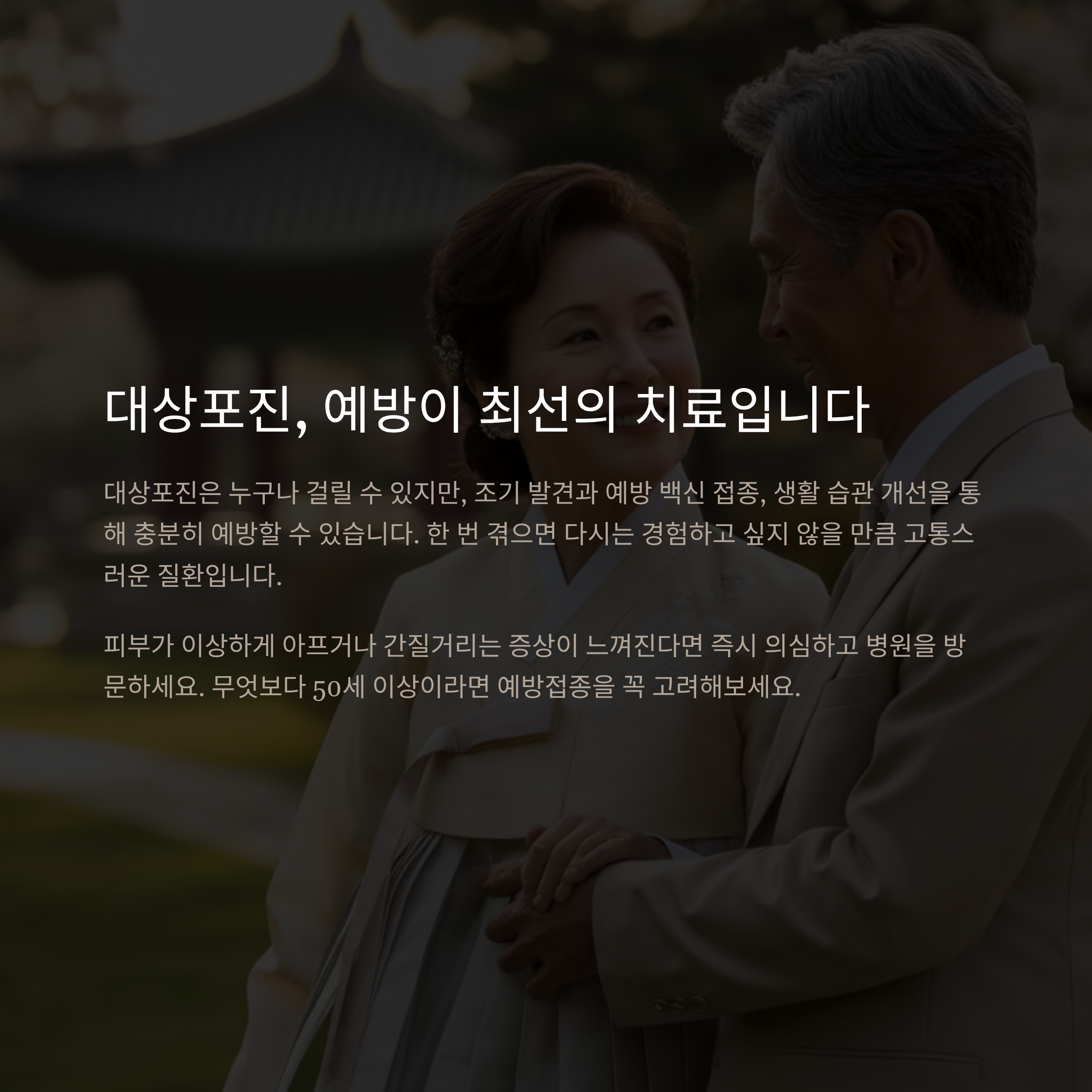 대상포진 백신은 50세 이상이라면 누구나 고려할 수 있습니다.