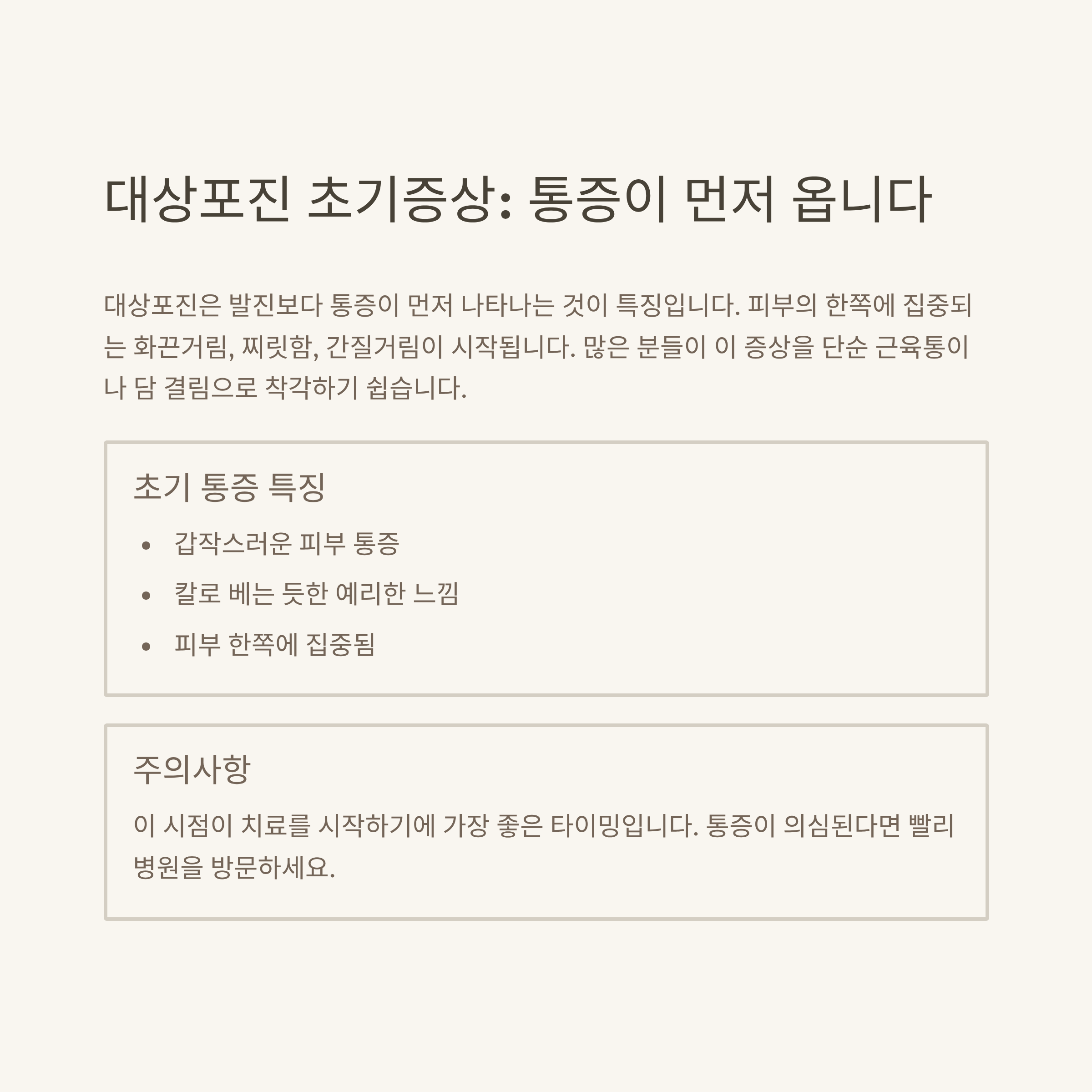 이 글에서는 대상포진의 초기증상부터 위험 요인,