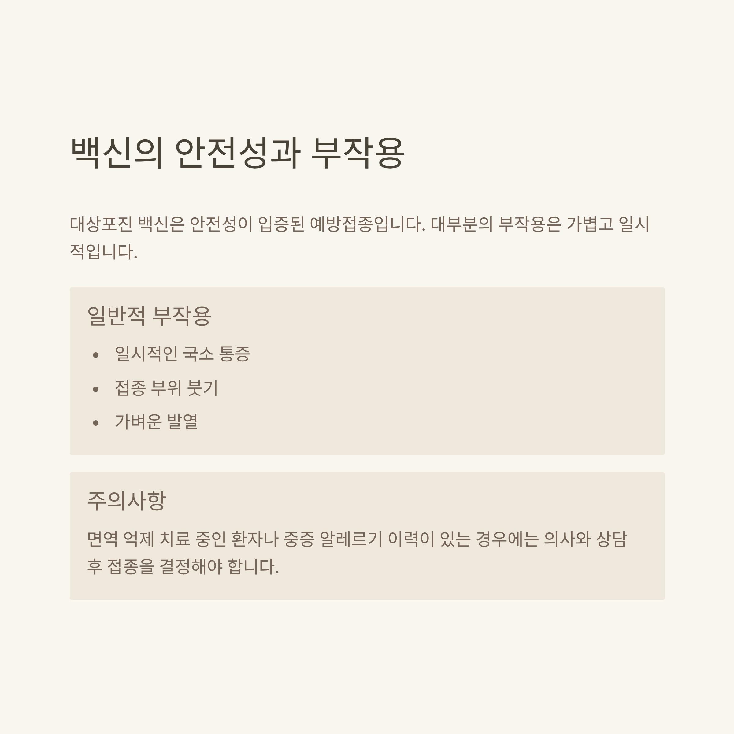 백신의 부작용은? 일반적인 예방접종 반응 수준입니다