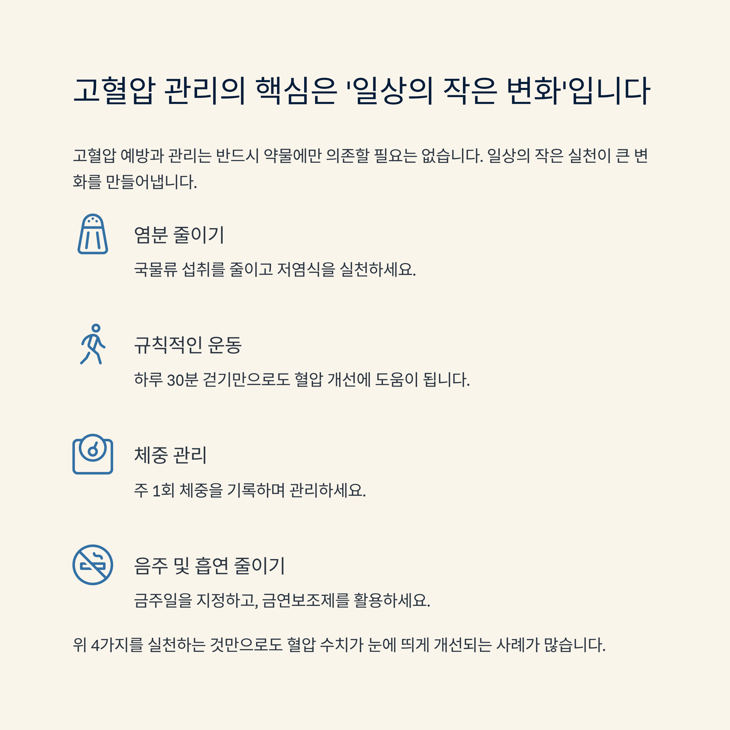 고혈압 관리의 핵심은 '일상의 작은 변화'입니다
