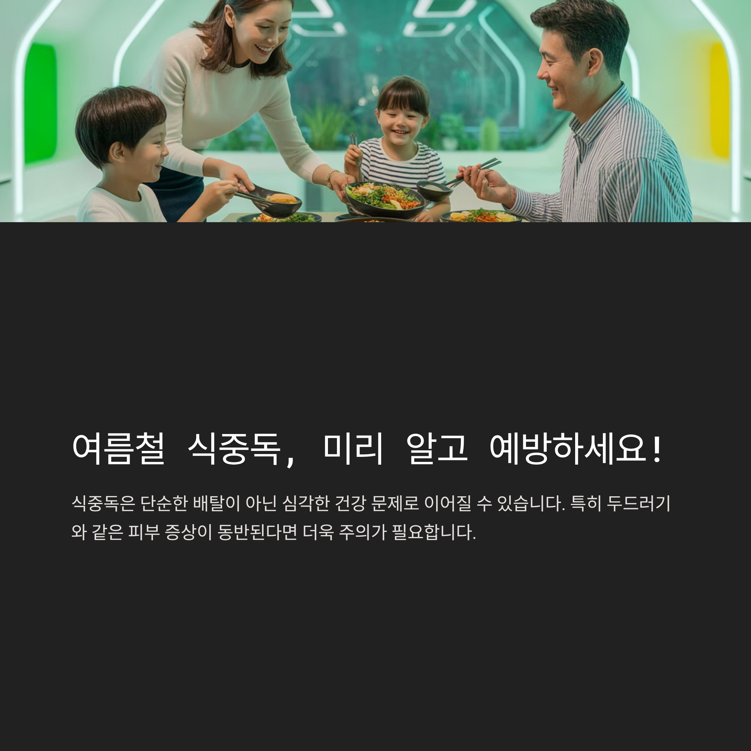 위생적인 조리 환경을 유지하고, 음식물의 신선도를 항상 체크하는 습관이 식중독 예방의 가장 중요한 열쇠입니다.