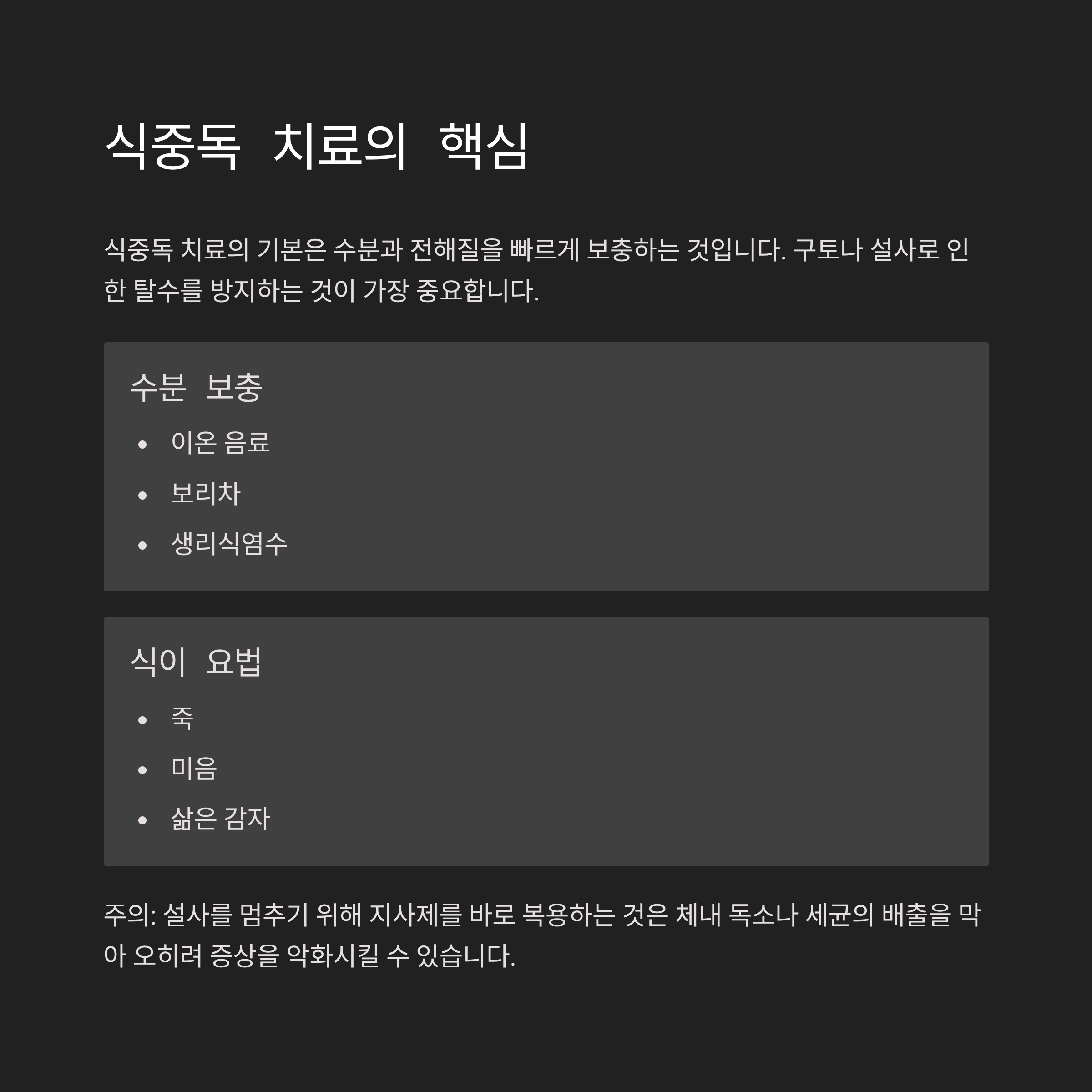 식중독 치료의 핵심은 수분 보충과 안정
