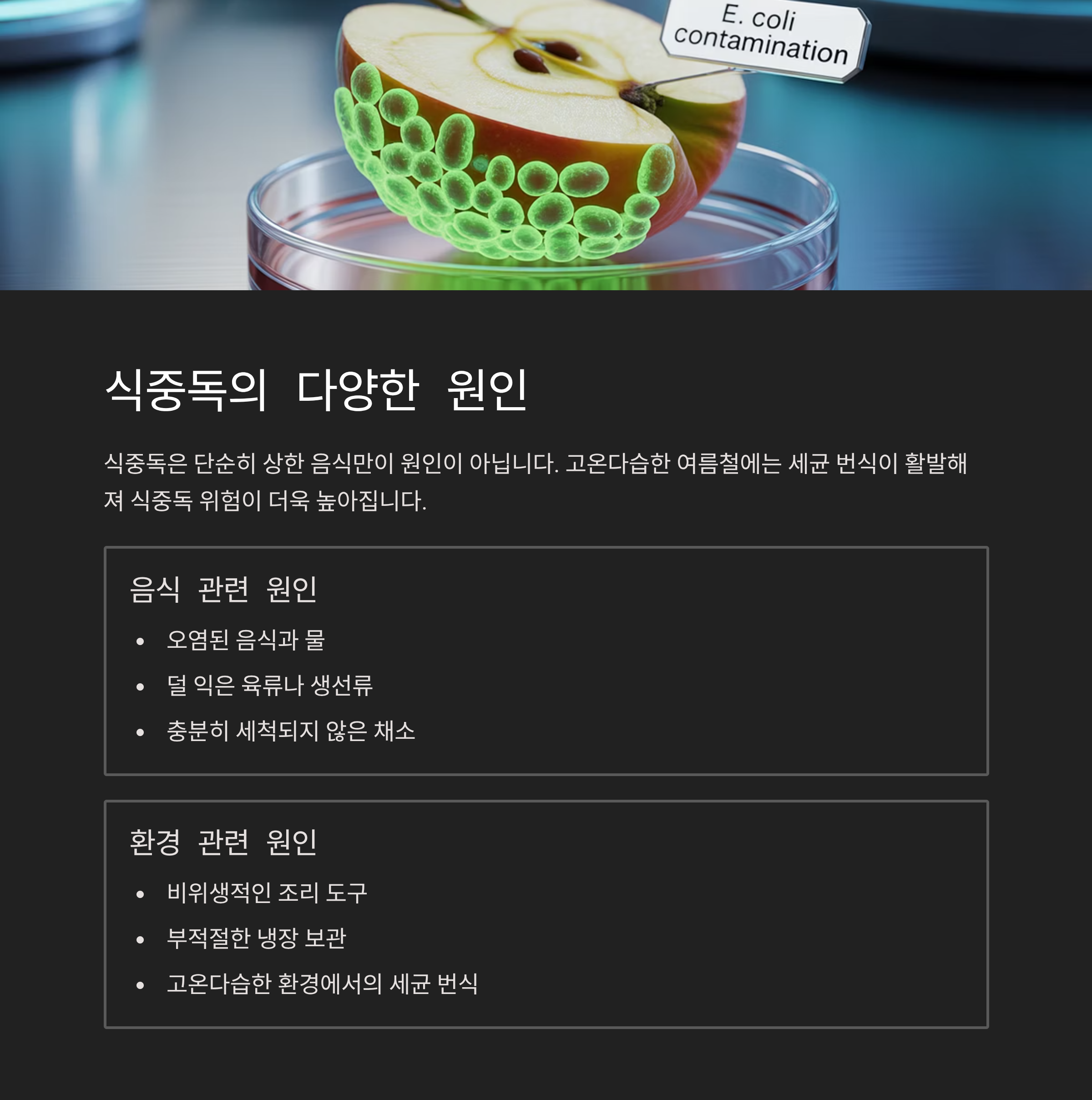 식중독, 오염된 음식만이 원인은 아닙니다