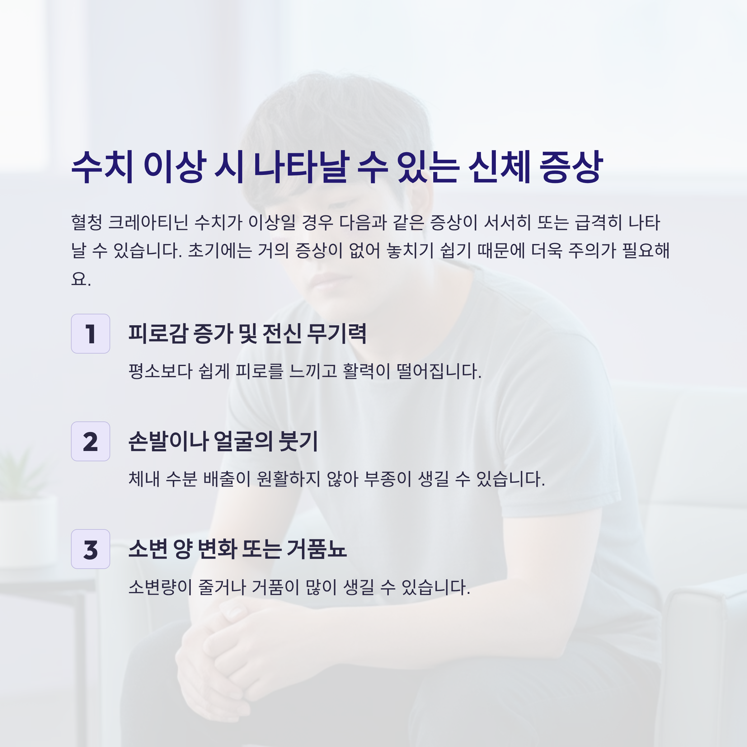 혈청 크레아티닌 수치가 이상일 경우 다음과 같은 증상이