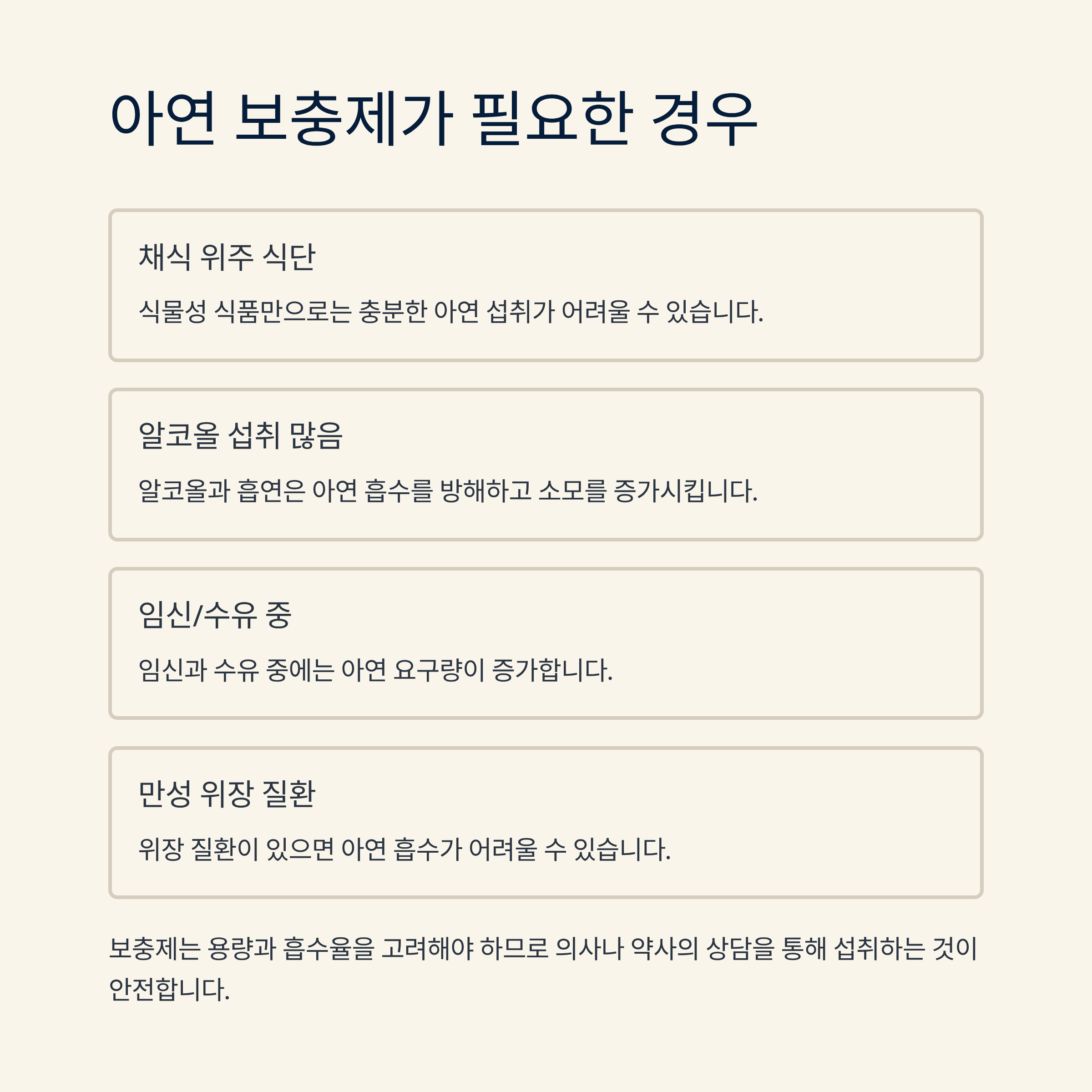 충분한 아연을 섭취할 수 있습니다. 하지만 다음과 같은 경우엔