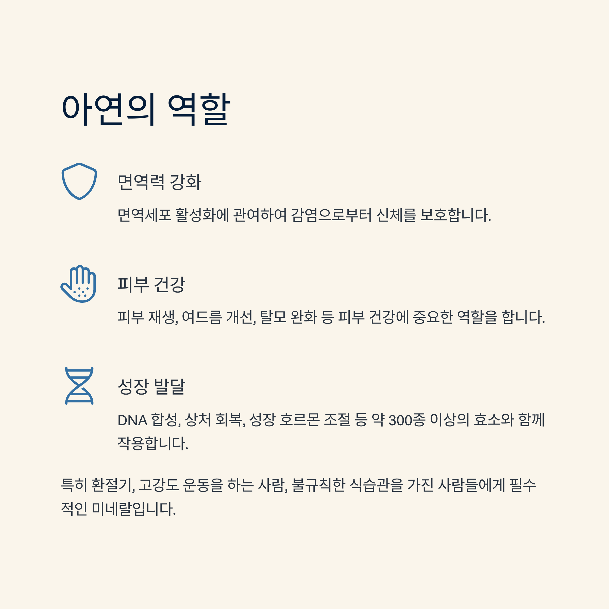 아연은 우리 몸에서 어떤 역할을 하나요?