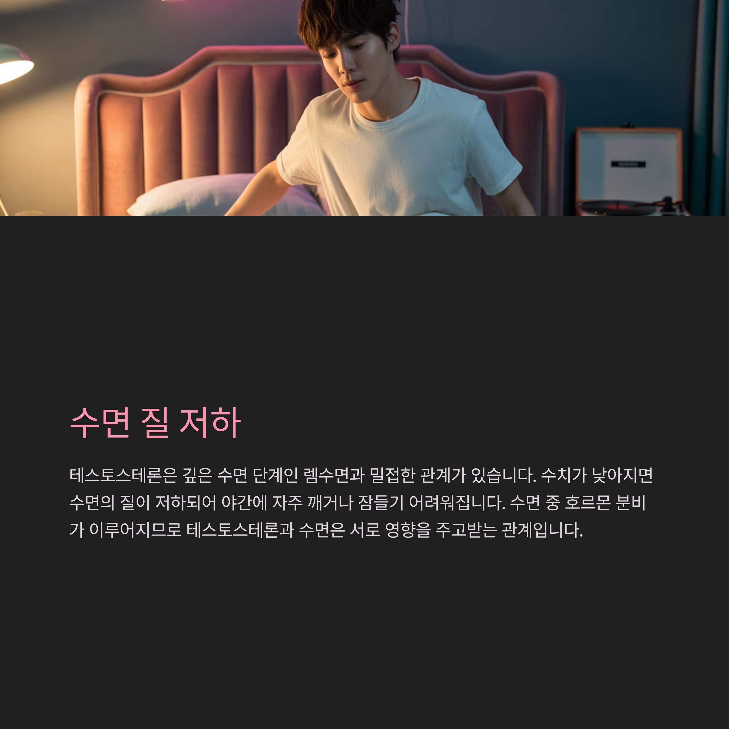 수면 중 호르몬 분비가 이루어지는 만큼, 테스토스테론 수치는