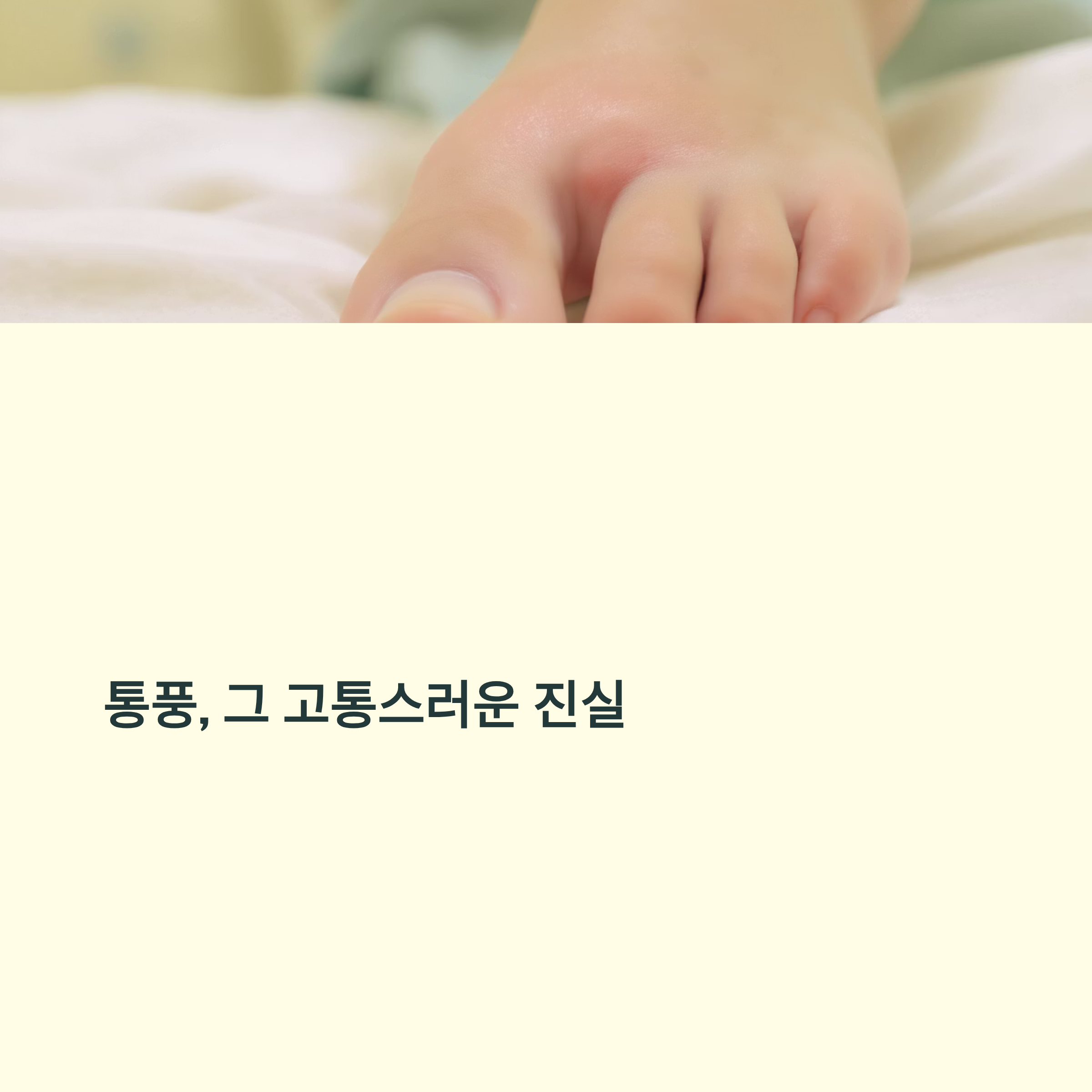 그로 인해 극심한 통증과 염증이 발생하는 대사성 질환입니다. 주로 엄지발가락 관절에서
