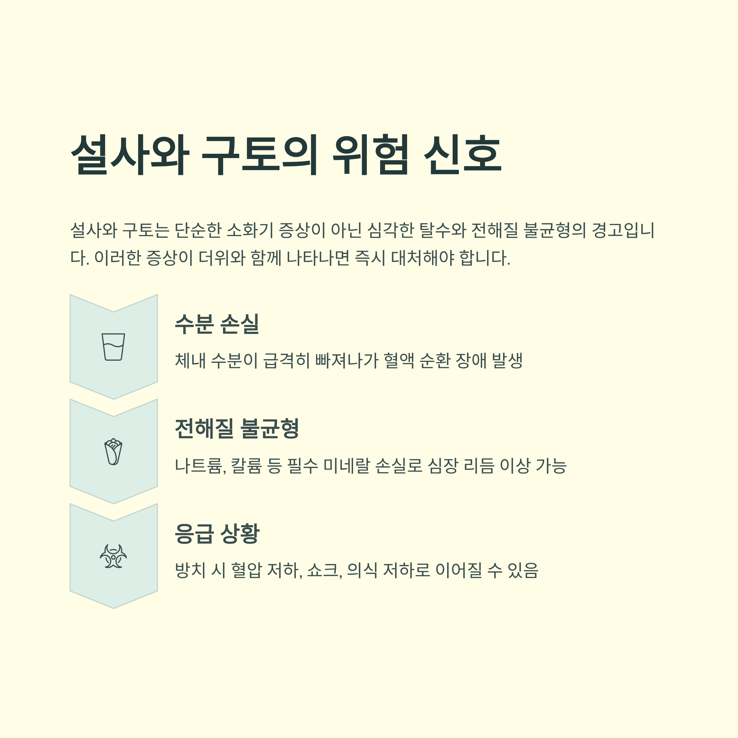 설사와 구토는 체내 수분 손실뿐 아니라 나트륨, 칼륨, 마그네슘 등