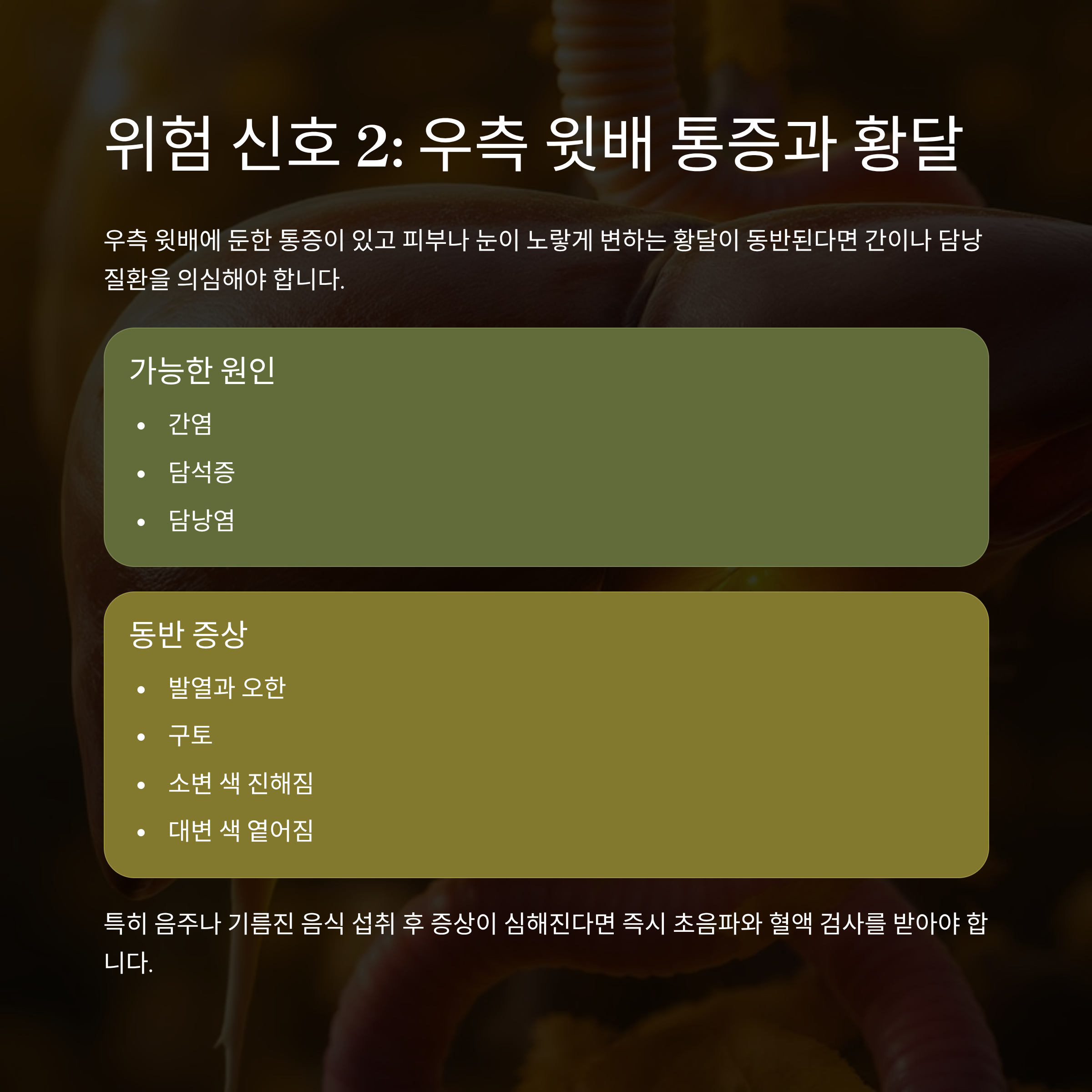 우측 윗배의 둔한 통증과 황달