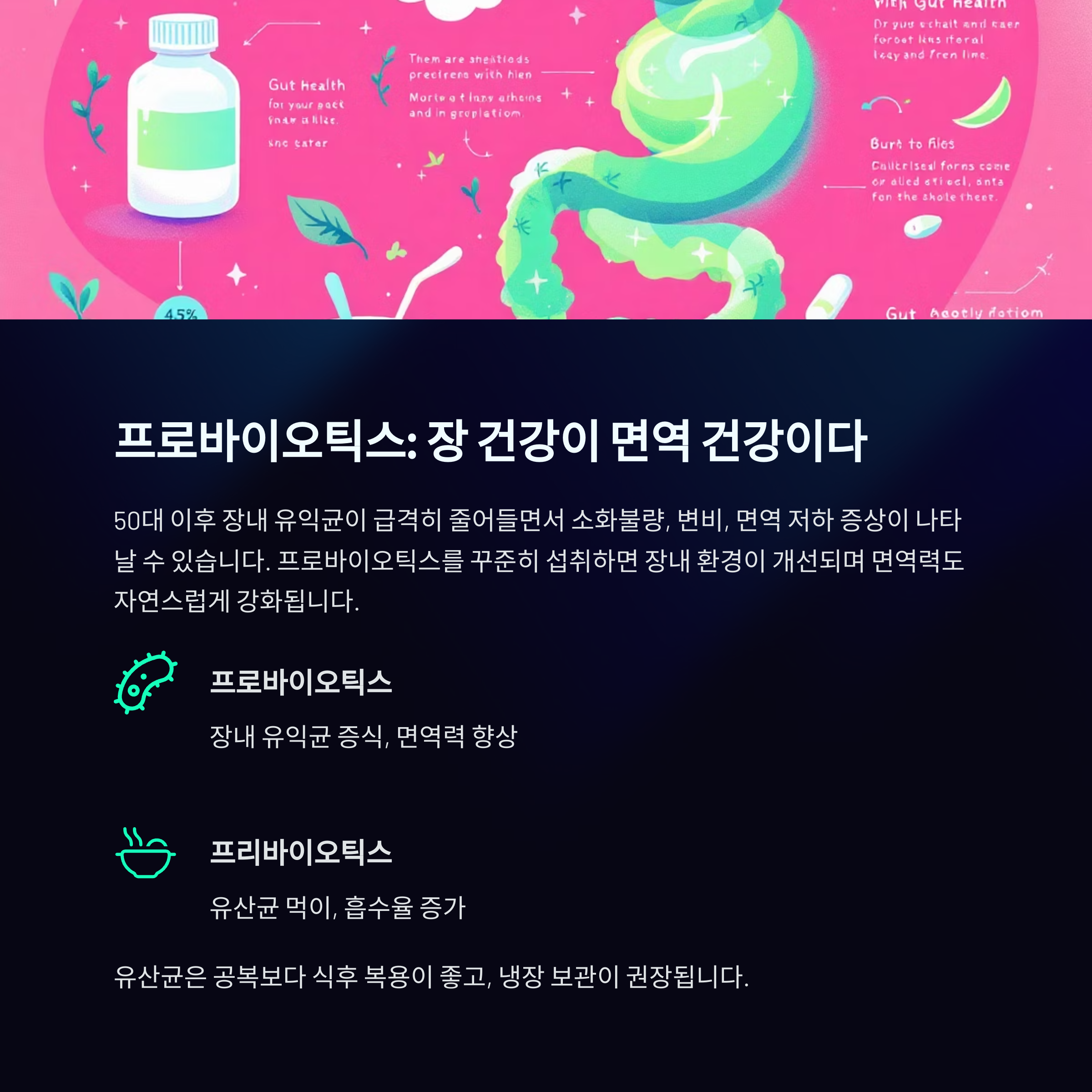 50대는 신체 변화가 뚜렷하게 나타나는 시기로, 노화 방지와 면역력 유지를 위한