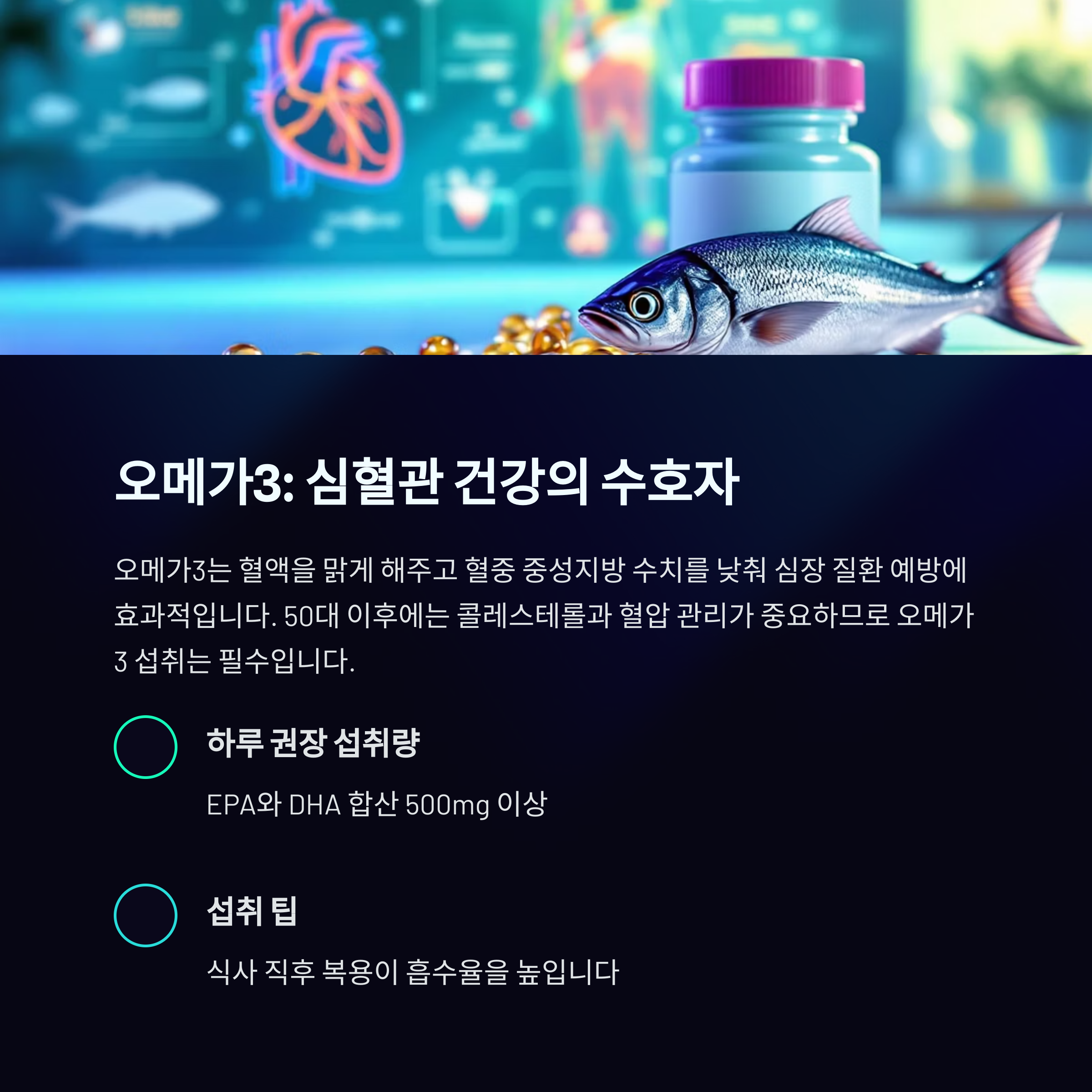심장 질환 예방에 효과적인 성분입니다. 특히 50대 이후에는