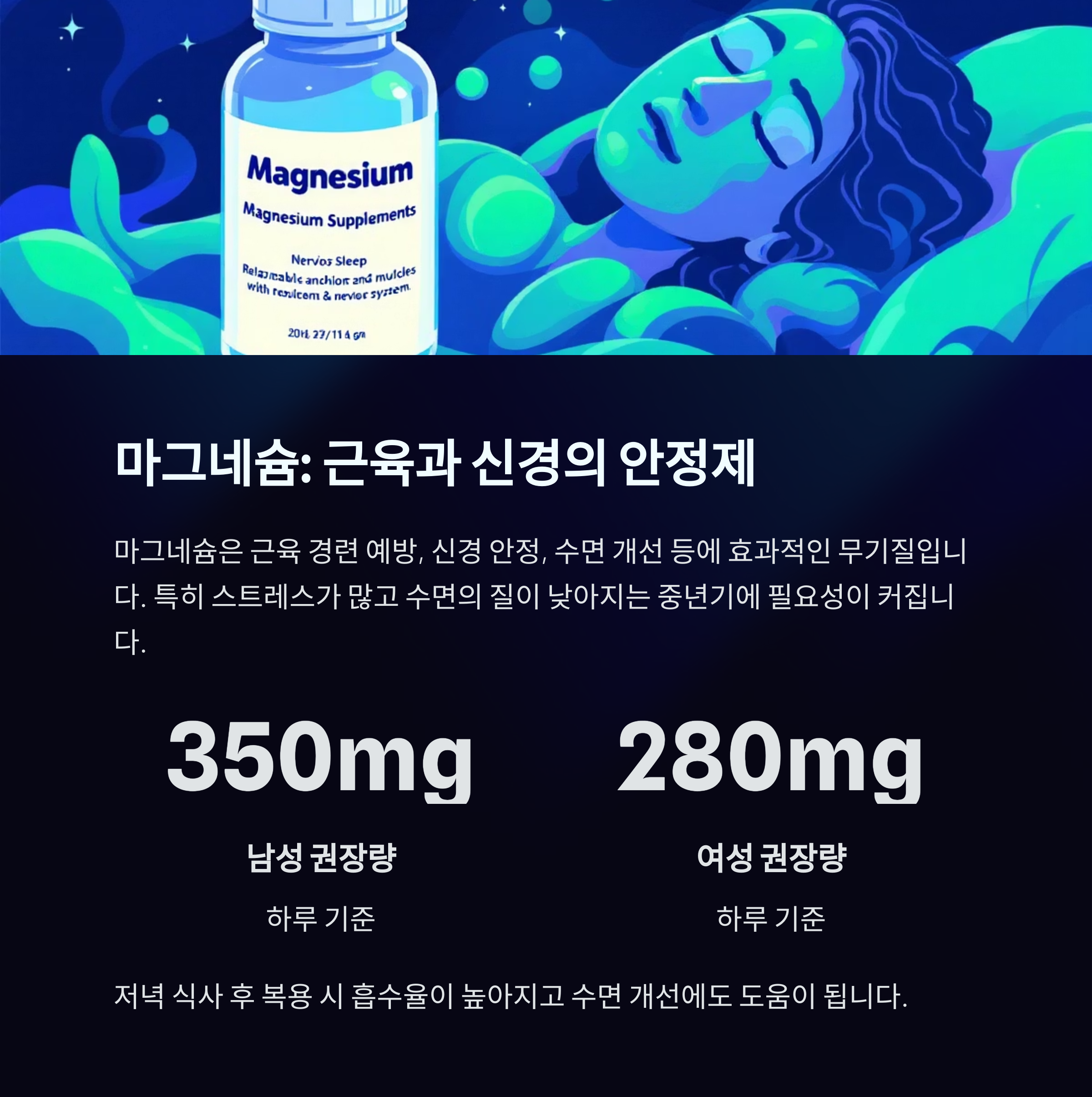 마그네슘은 근육 경련 예방, 신경 안정, 수면 개선 등에