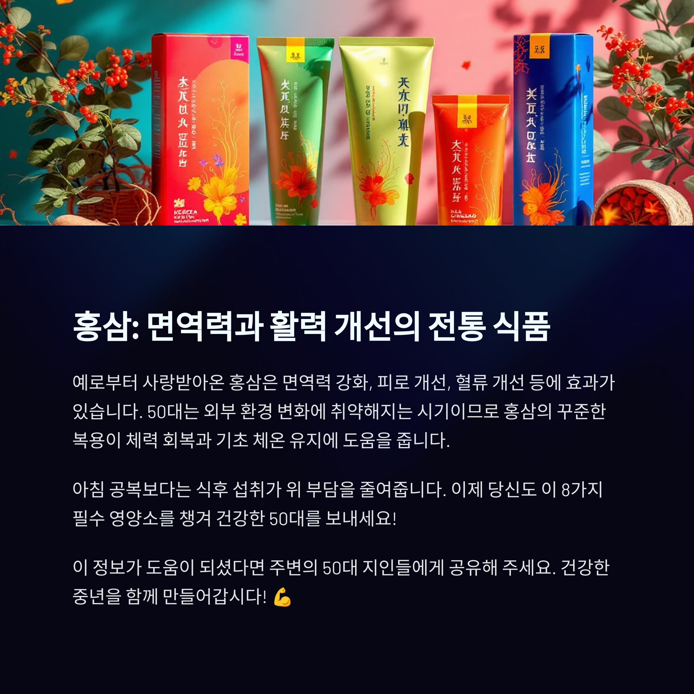 이번 글에서는 50대에게 꼭 필요한 건강식품 8가지를 소개하며, 각각의 효능과