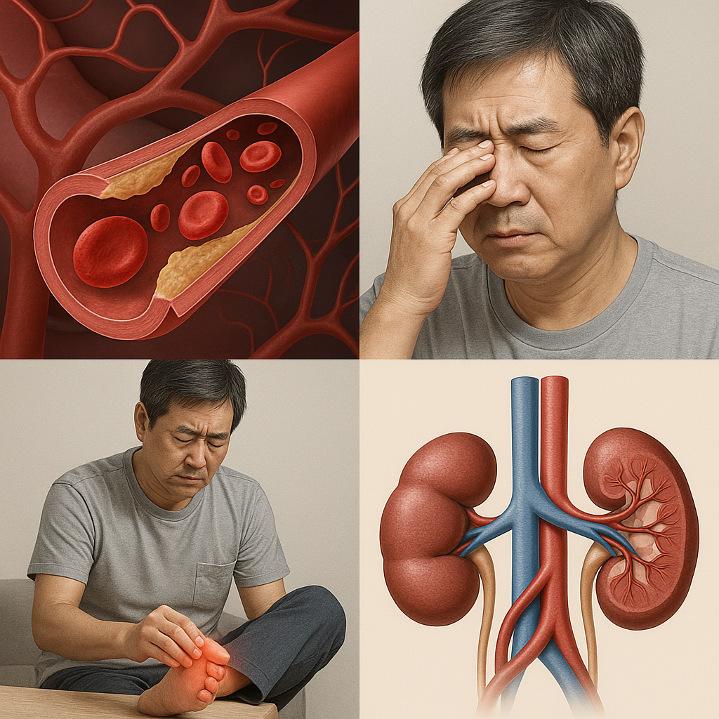 이는 눈, 신장, 신경 등 미세혈관이 집중적으로 분포한 기관에서 심각한 손상을 일으킵니다.