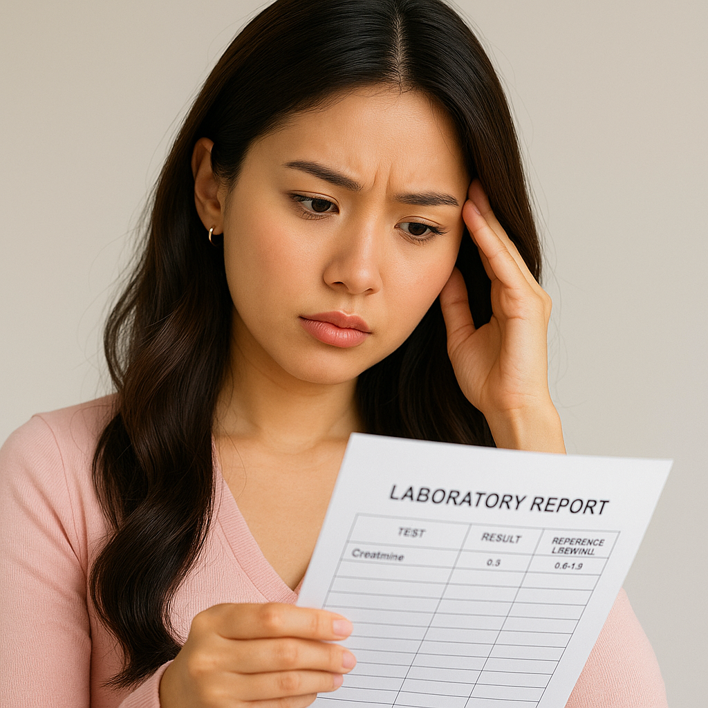 크레아티닌 수치가 낮게 나올 수 있지만, 실제 신장 기능은 저하돼 있을 수 있습니다.