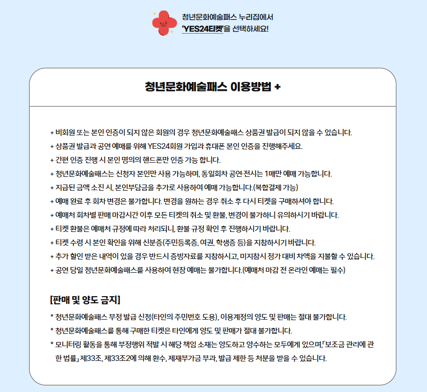 어디서 예매? | NOL 티켓(인터파크 전환) 이벤트/전용관 | YES24 청년문화예술패스 전용 페이지 |