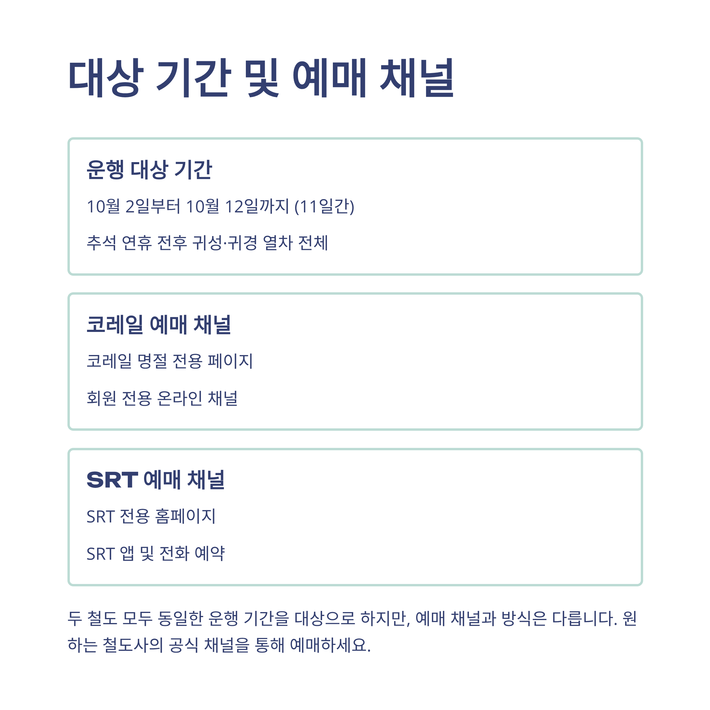 코레일은 명절 전용 페이지에서, SRT는 전용 홈페이지와 앱·전화로 접수합니다.