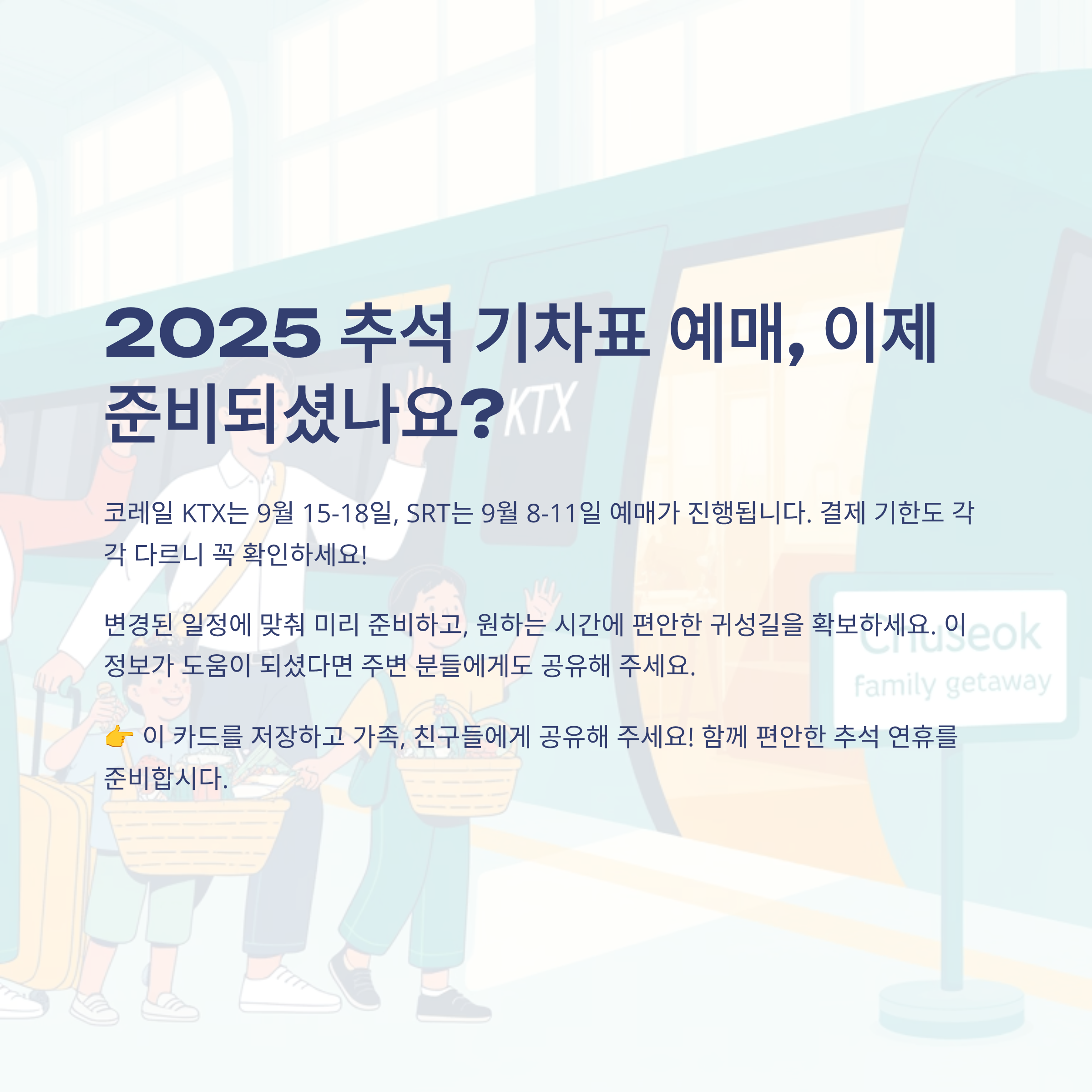 2025.08.26 - [이슈] - [2025 추석 KTX 예매 일정 총정리] SRT 예약 꿀팁까지 한눈에!