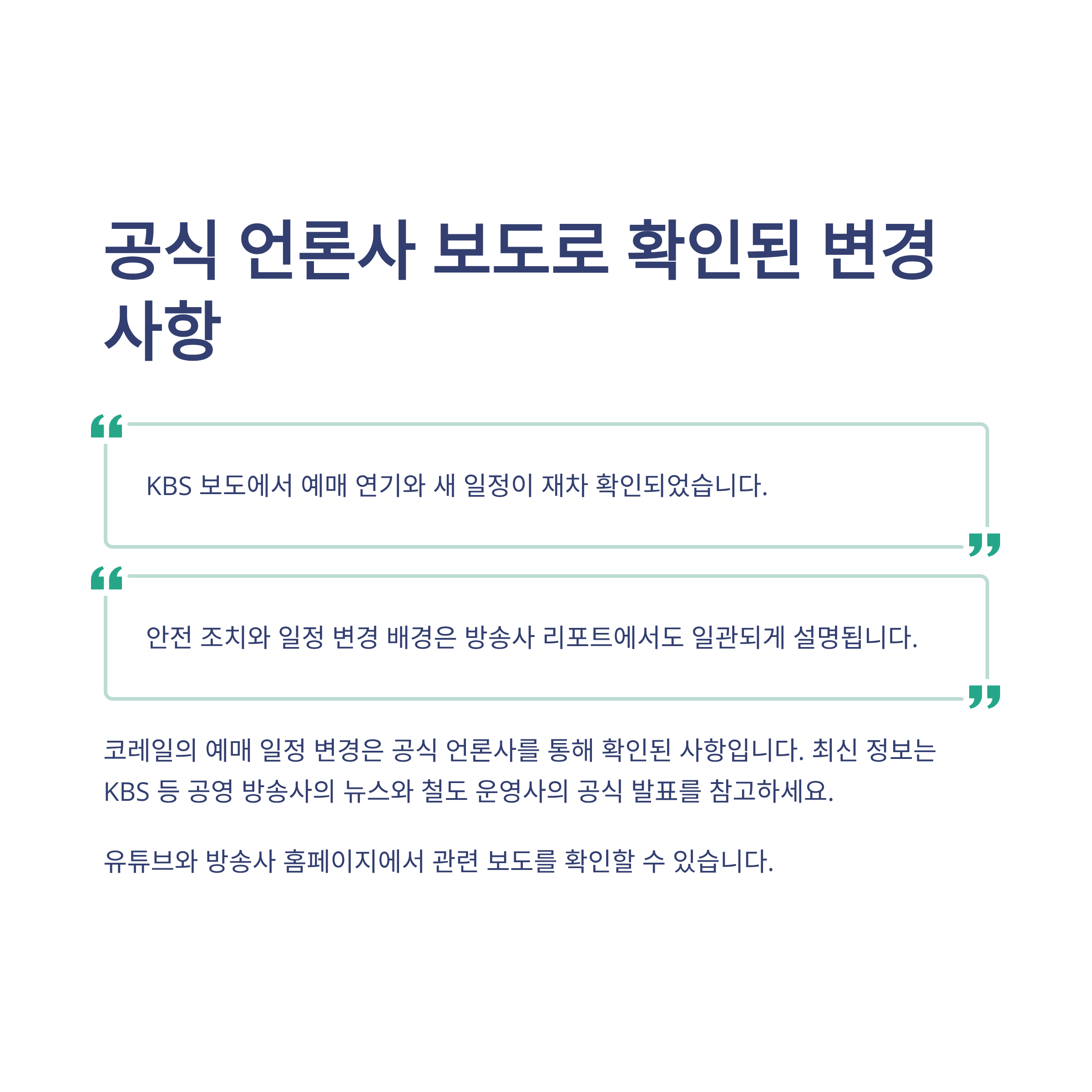 KBS 보도에서 예매 연기와 새 일정이 재차 확인되었습니다. 영상 보도 기준입니다.