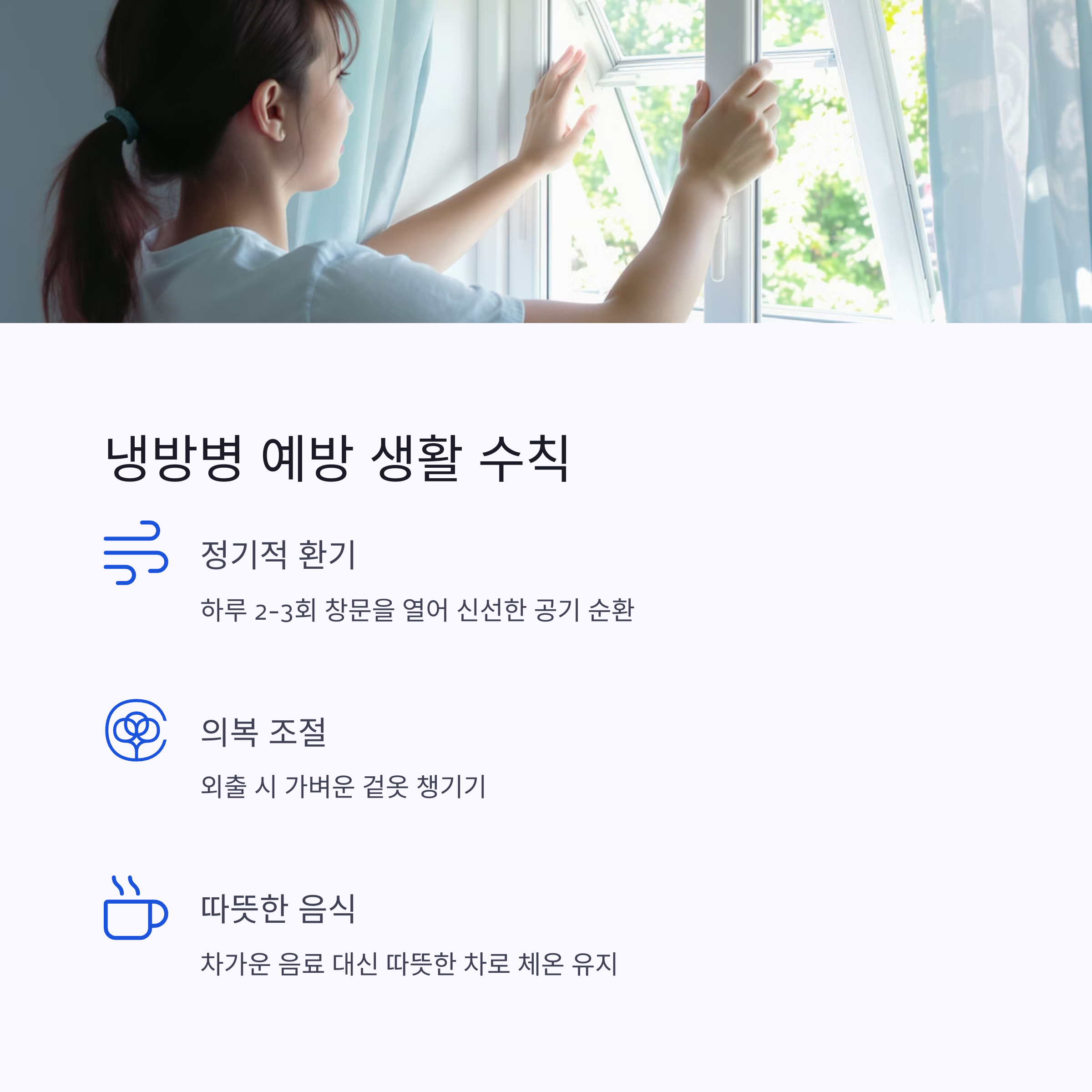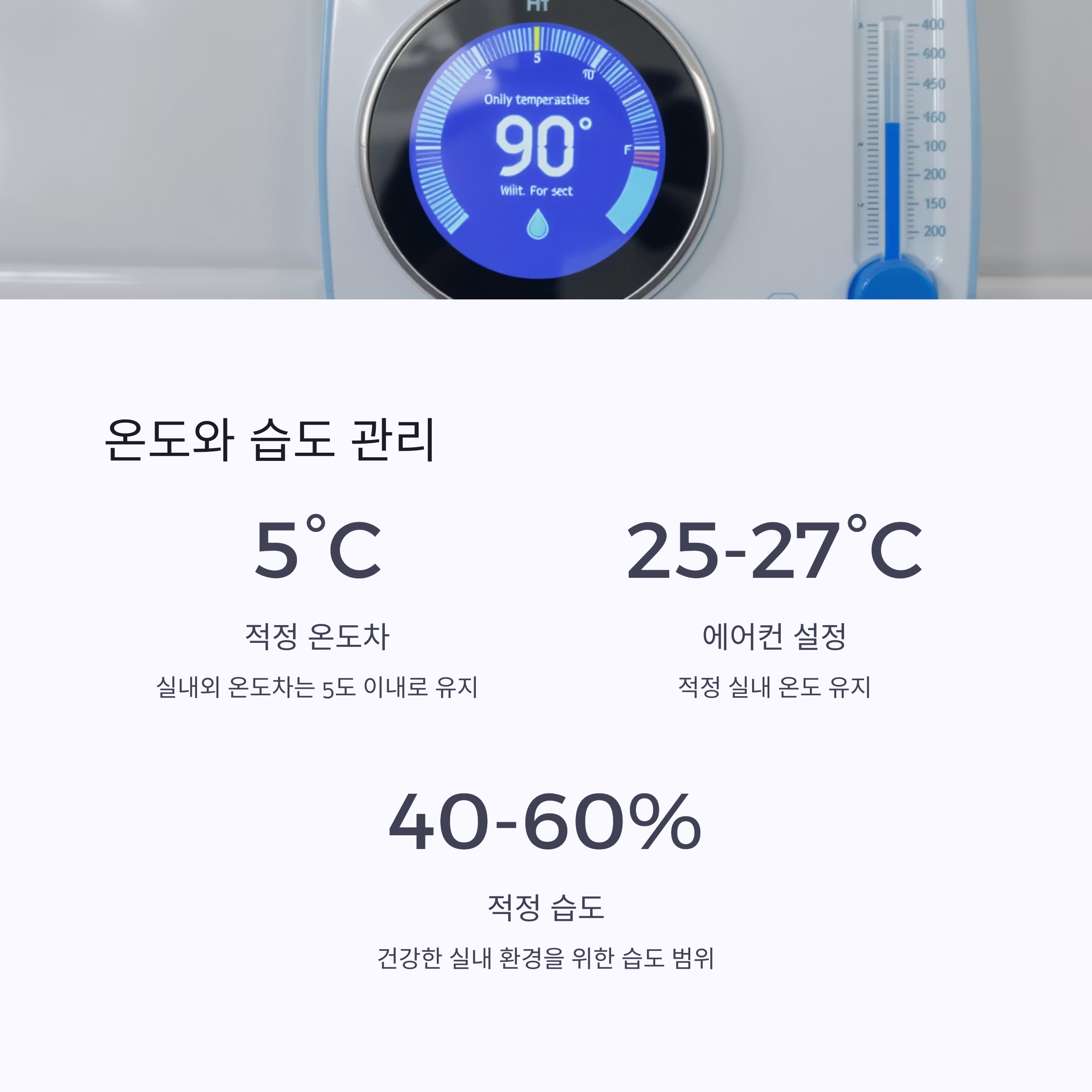 가장 기본적인 예방 방법은 실내외 온도차를 5도 이내로 유지하는 것입니다.