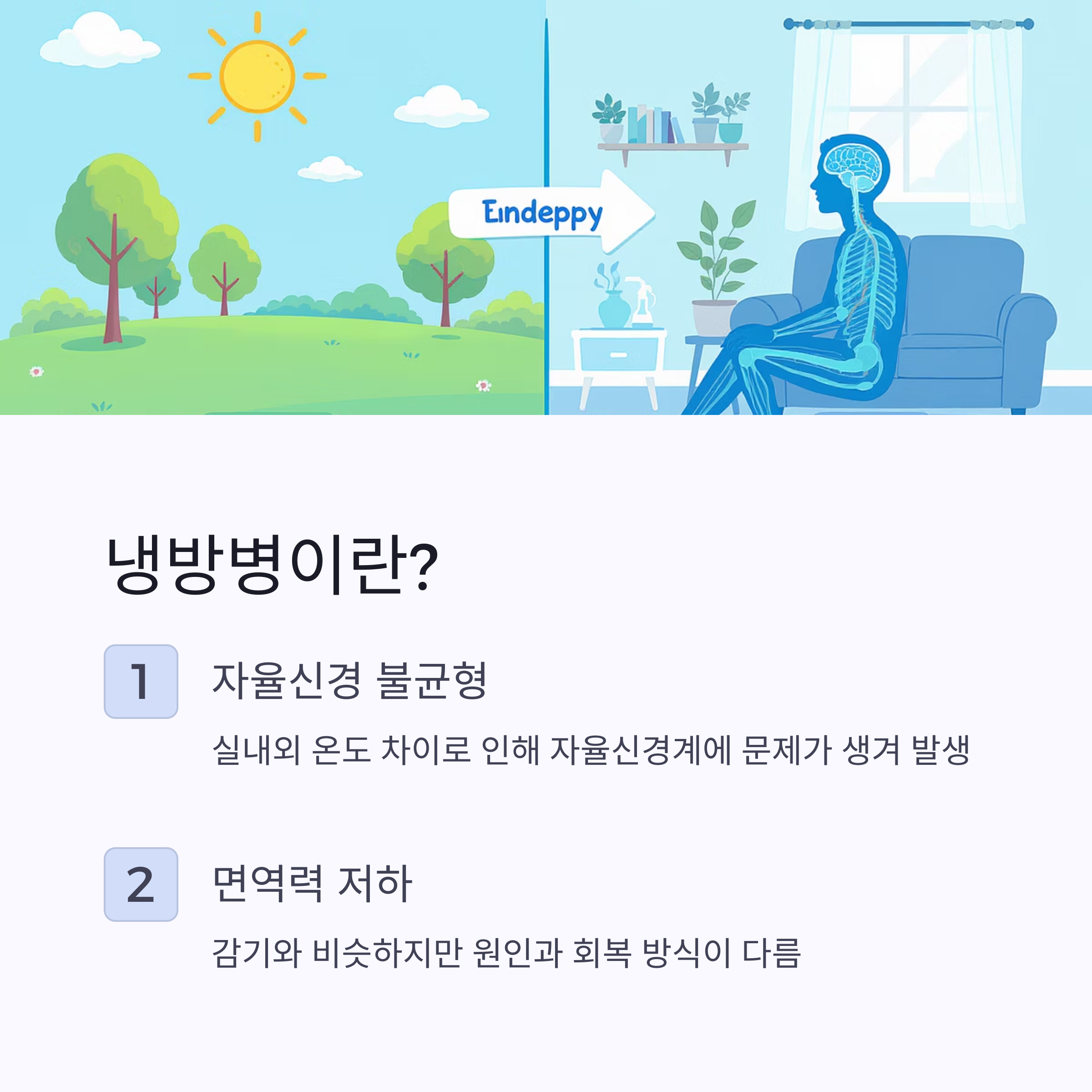 냉방병은 여름철 실내외 온도 차이가 심할 때 자율신경계에 문제가 생겨