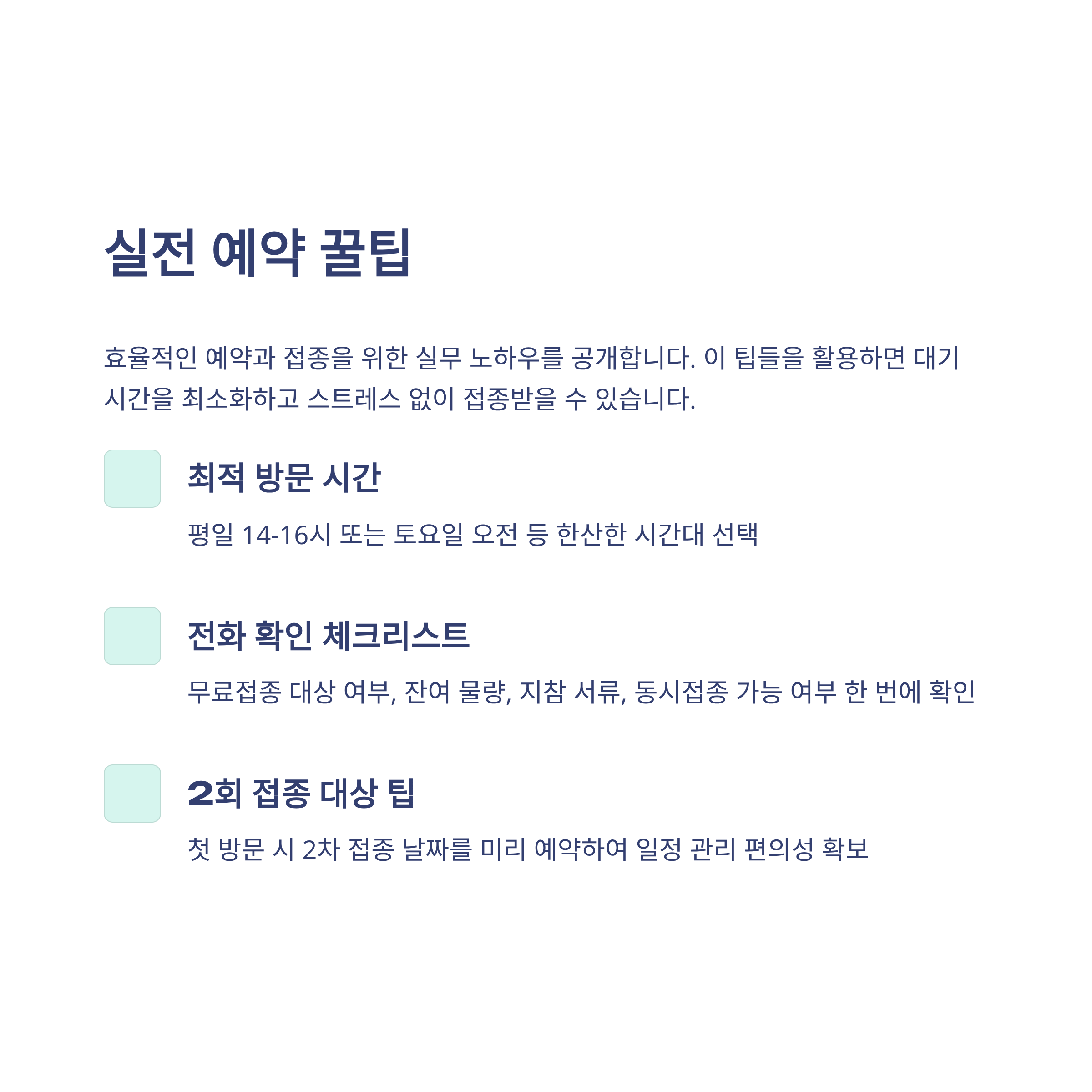 아이가 2회 접종 대상이라면 첫 방문 시 2차 권장 날짜를 바로 잡아두면 취소·변경 스트레스가 줄어듭니다.