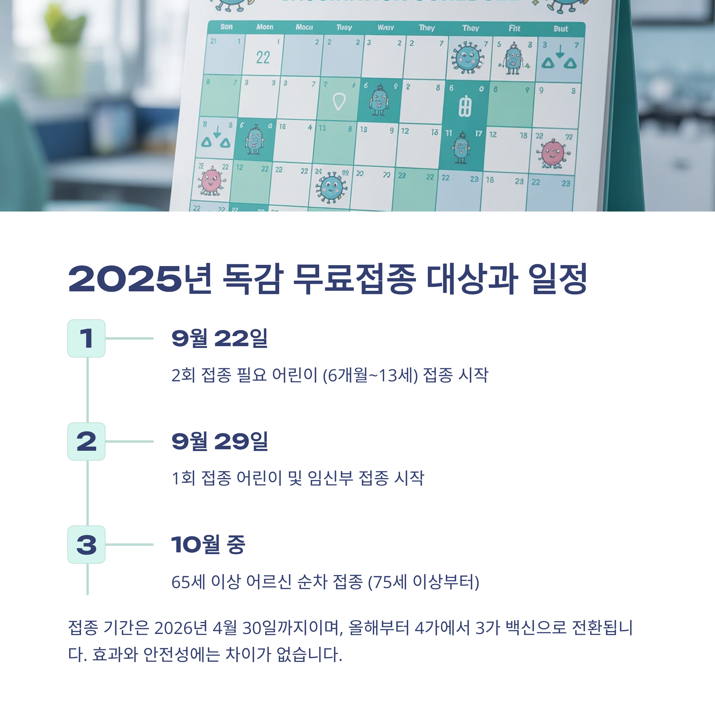 2025 절기 무료접종 대상과 시작일 요약, 올해 무엇이 바뀌었나요