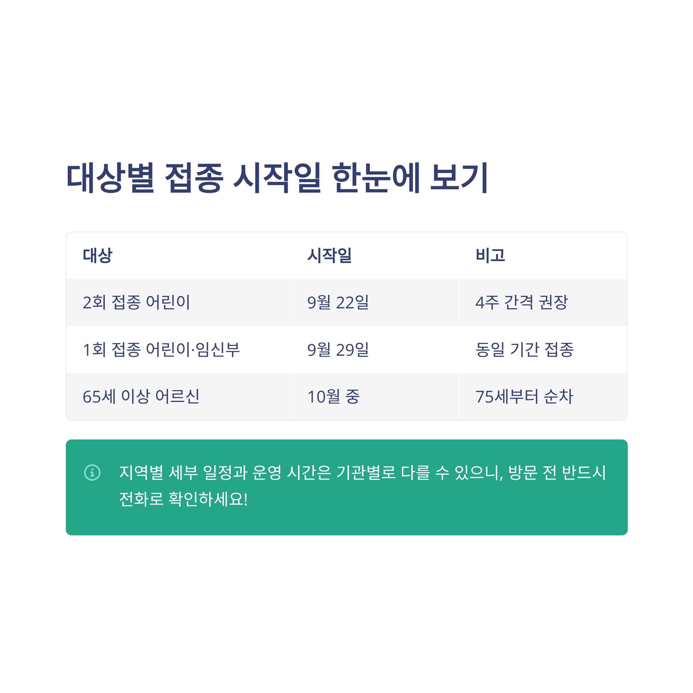 1회 접종 어린이·임신부 | 2025년 9월 29일 | 동일 기간 내 접종 권장 |