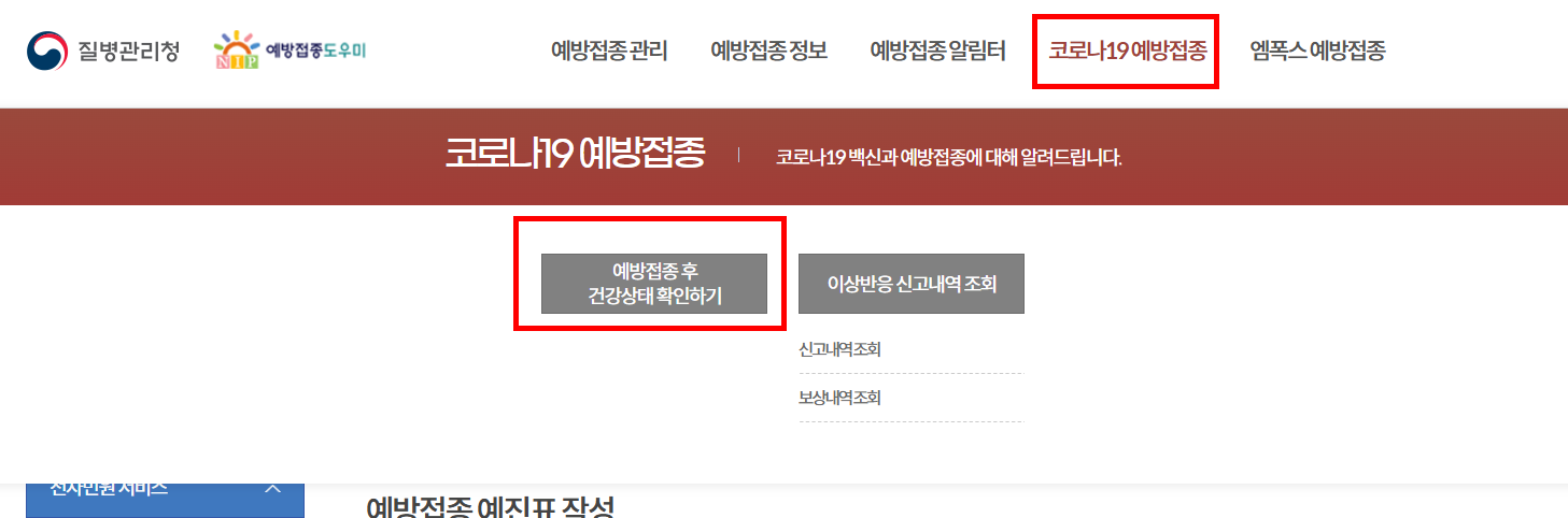 코로나 19 예방접종 후 이상반응이 의심되면 예방접종도우미의 이상반응 신고하기 메뉴에서 온라인으로 보고할 수 있습니다. 본인 건강상태 확인하기 도구를 통해 증상 점검과 신고 연결이 가능합니다