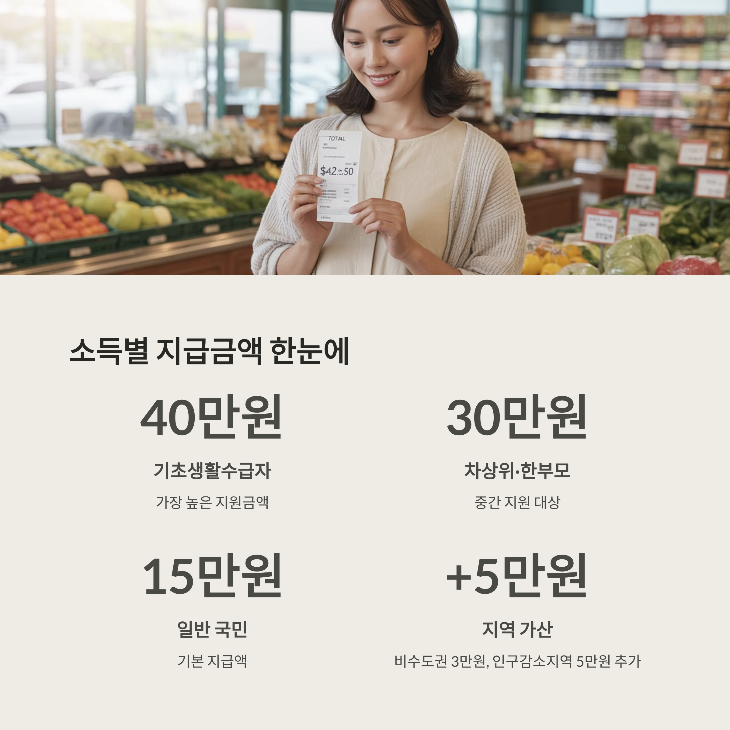금액은 소득과 지역에 따라 다르게 책정되어 지급됩니다.