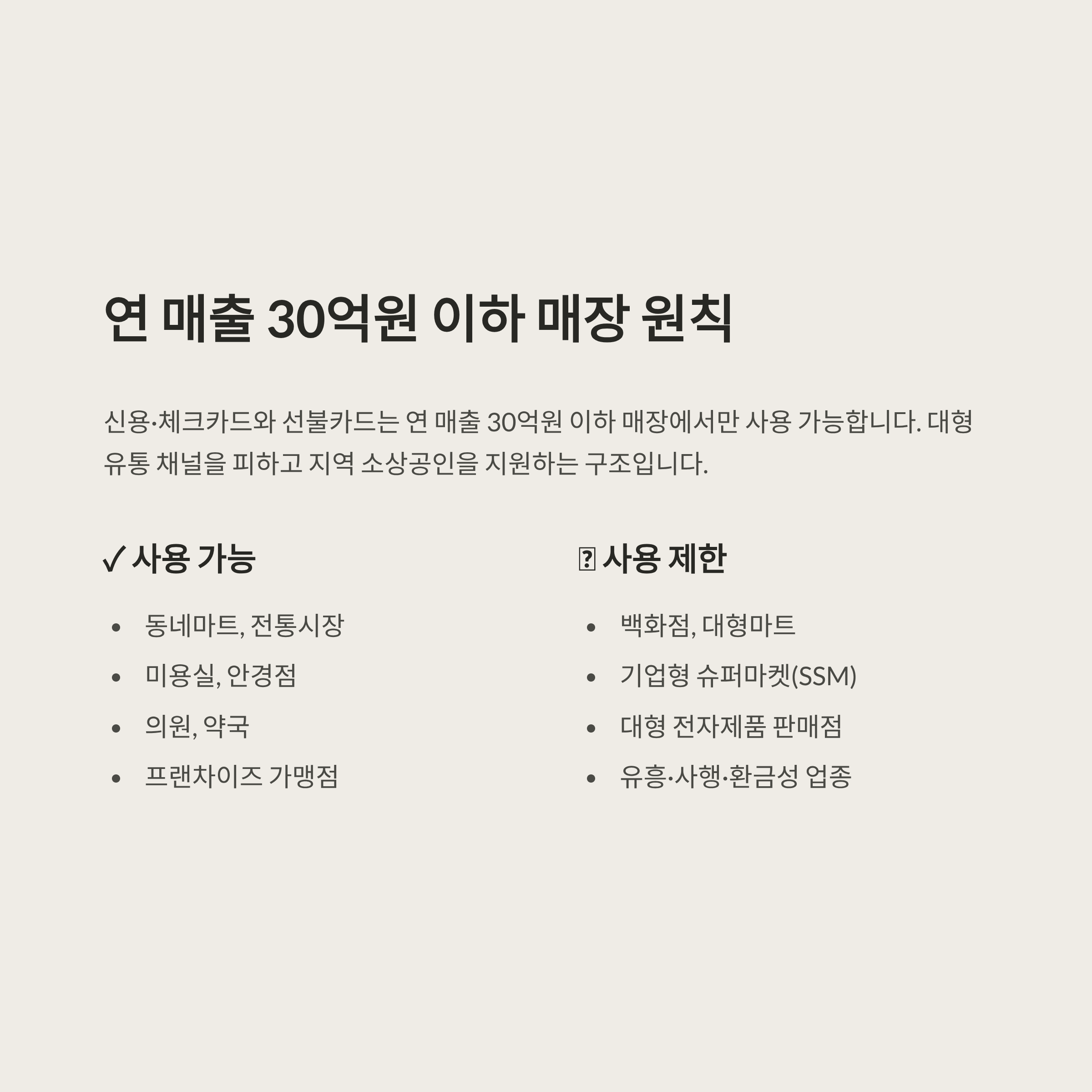 가맹점과 업종 제한은 지자체와 점포별로 다를 수 있습니다.