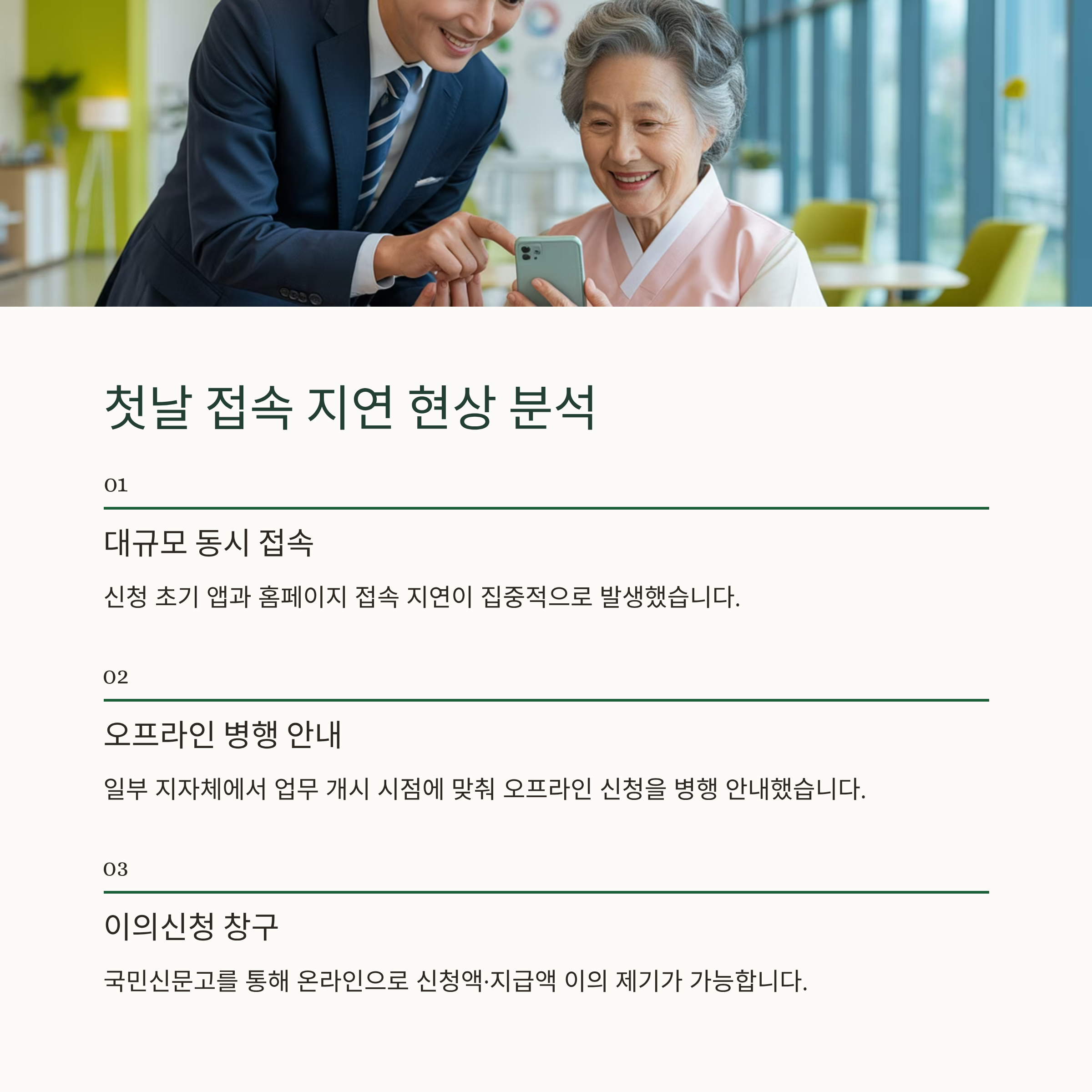 | 접속 지연 | 동시 신청 폭주 | 정부 시각 자료 참고·재시도 |