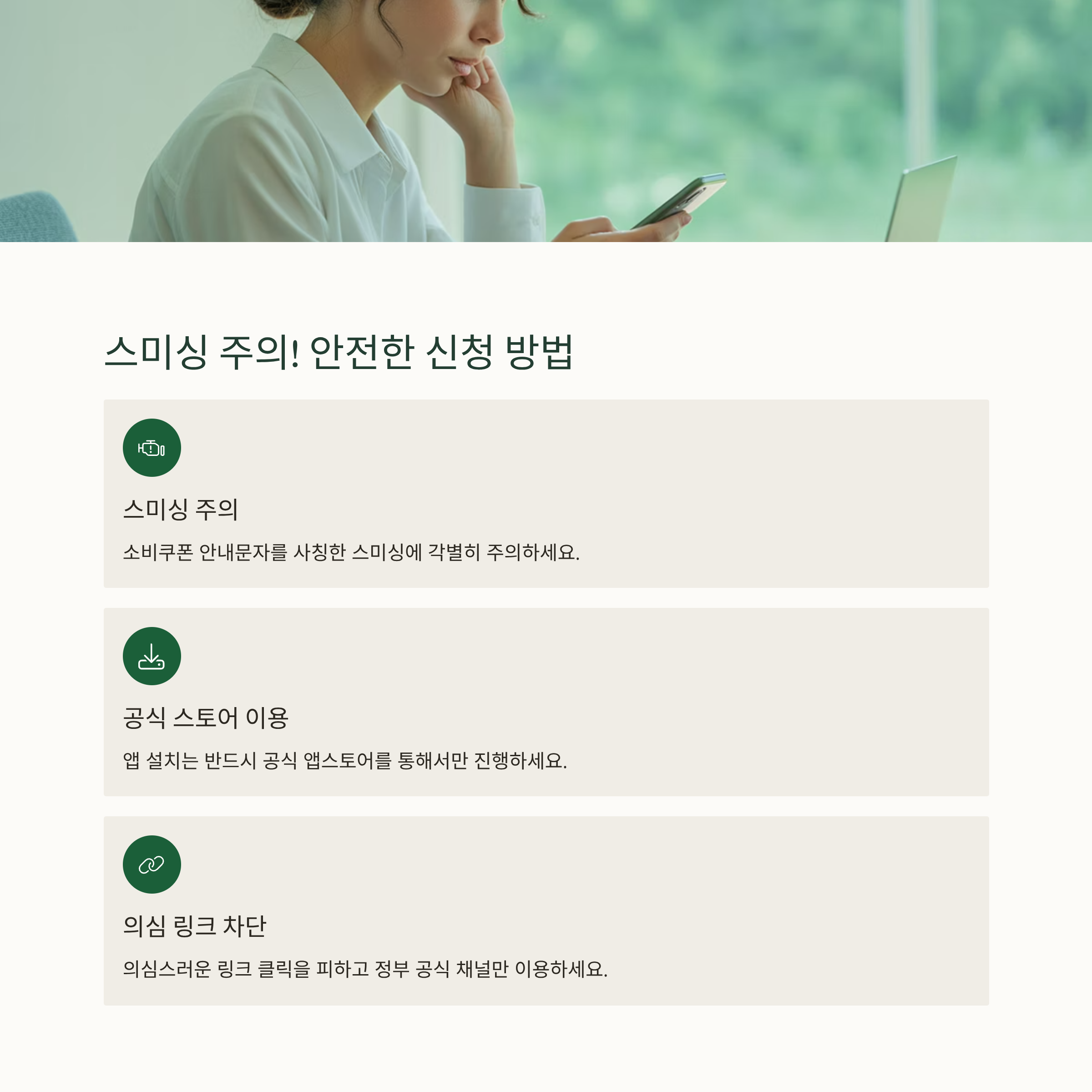 보안 경보와 스미싱 주의, 안전하게 신청하려면