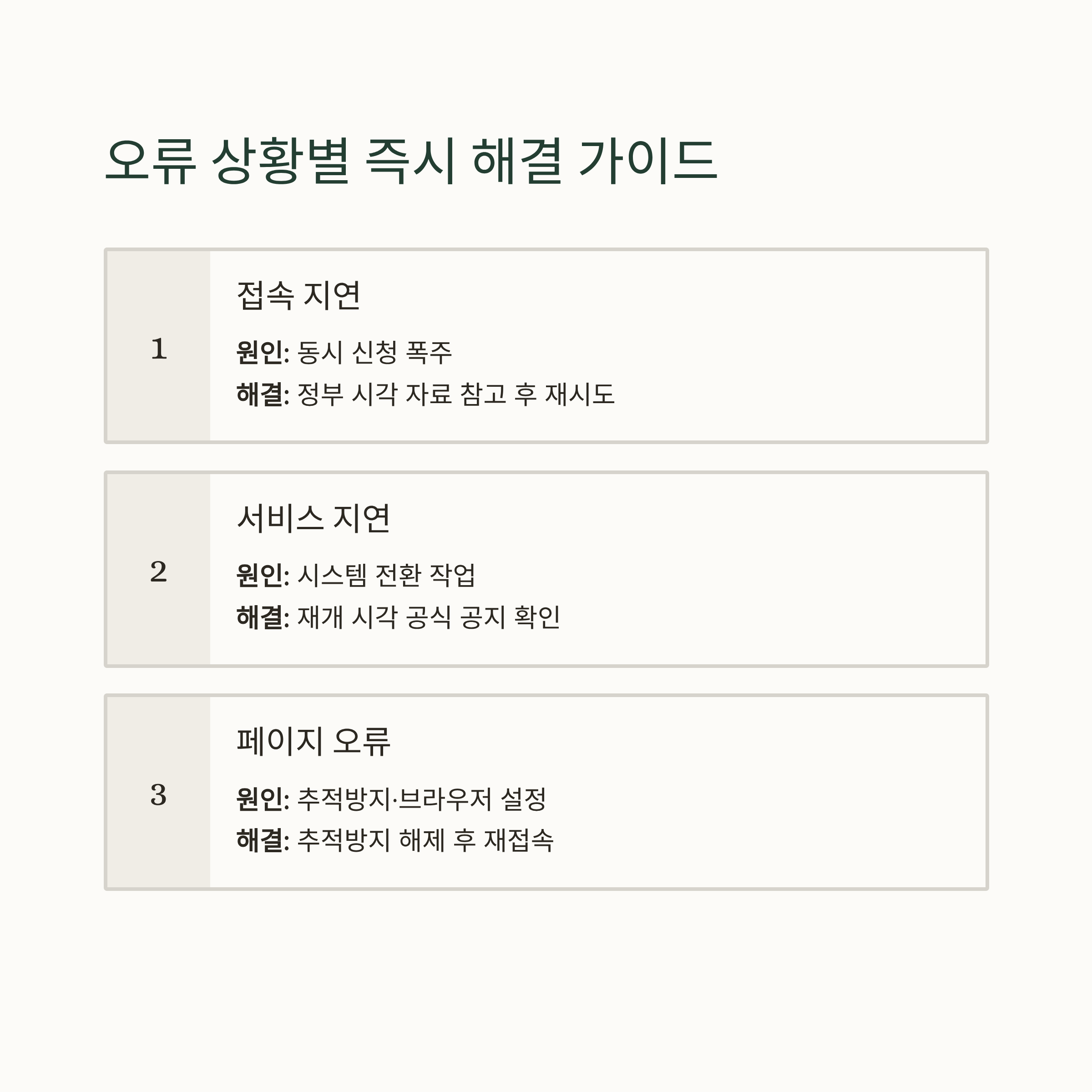접속 지연 | 동시 신청 폭주 | 정부 시각 자료 참고·재시도 |