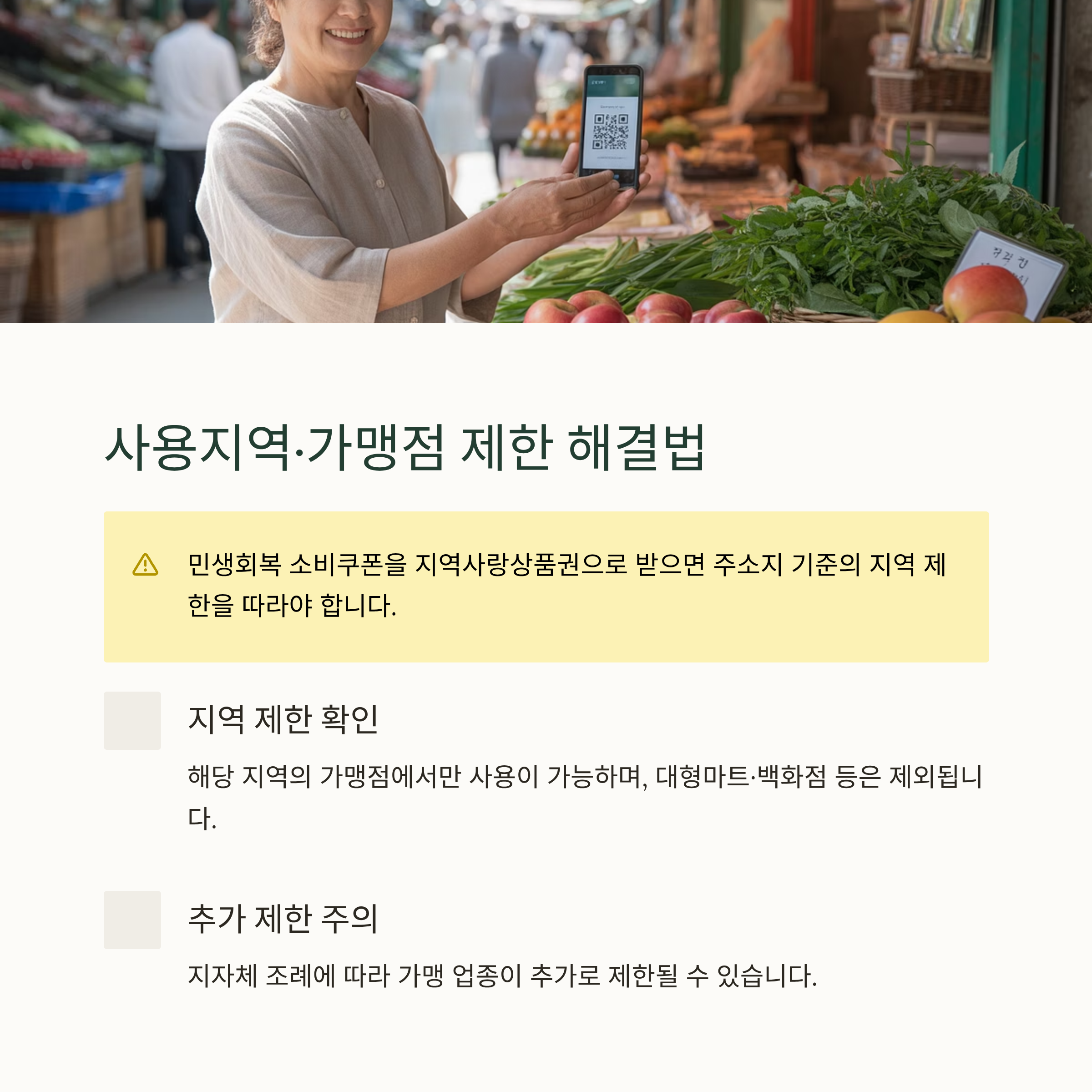 민생회복 소비쿠폰 사용처, 어디서 쓰고 어떻게 확인할까요민생회복 소비쿠폰 사용처 핵심만 모아 한눈에 정리합니다.사용기한과 지역 제한, 가능한 업종과 예외, 신청과 확인 팁까지정부 공식